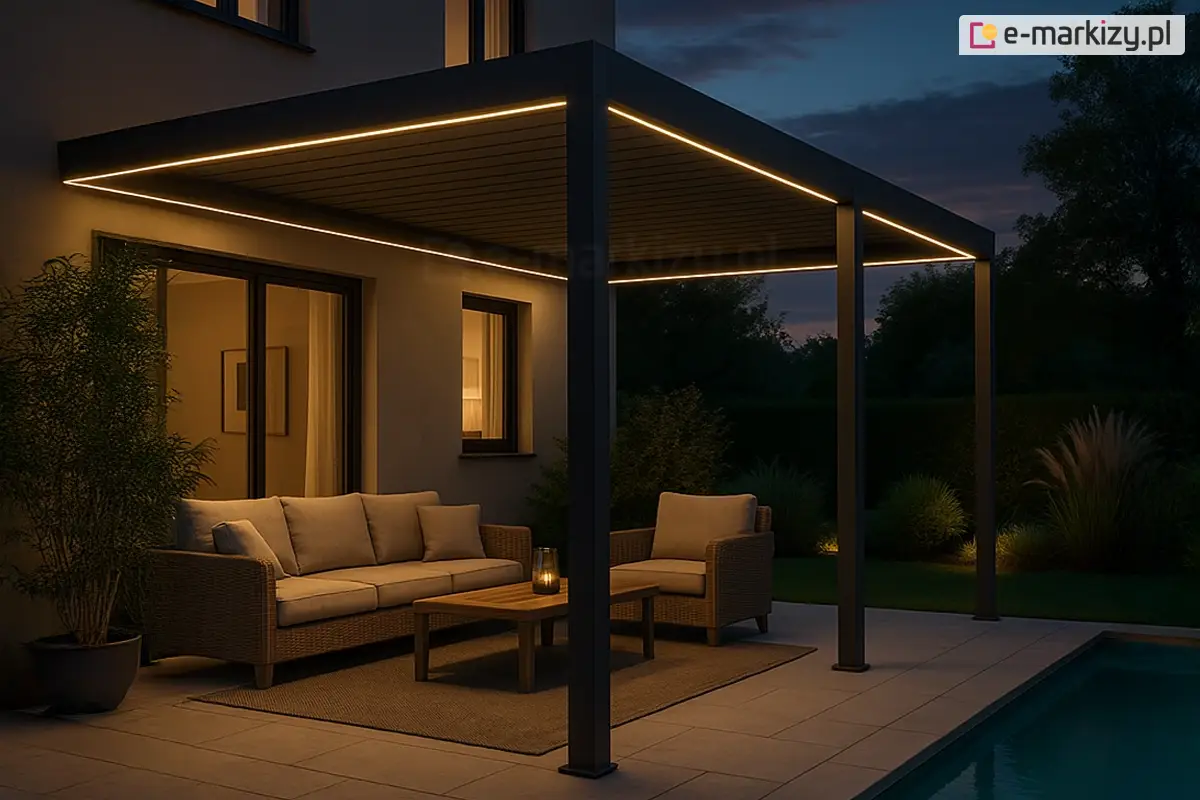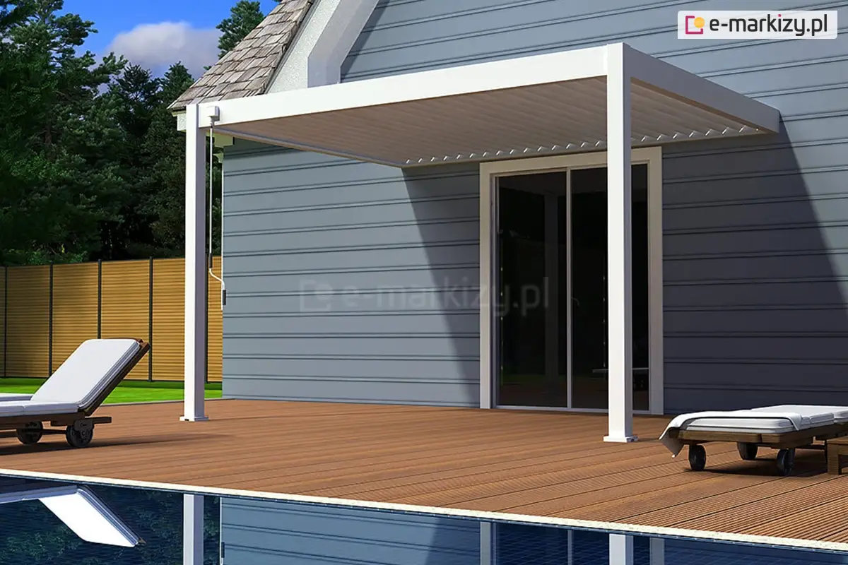 Pergola lamelowa Marlo to synonim nowoczesnego designu i niezawodnej funkcjonalności. Zaprojektowana jako pergola przyścienna z dachem lamelowym (obrót do 135°), doskonale komponuje się z architekturą domu, tworząc eleganckie przedłużenie salonu lub jadalni wprost na taras. Jej w pełni aluminiowa konstrukcja lakierowana proszkowo farbami AkzoNobel gwarantuje odporność na korozję, promieniowanie UV i trudne warunki atmosferyczne. To inwestycja w trwałość i wygodę, która zachowa perfekcyjny wygląd przez długie lata.