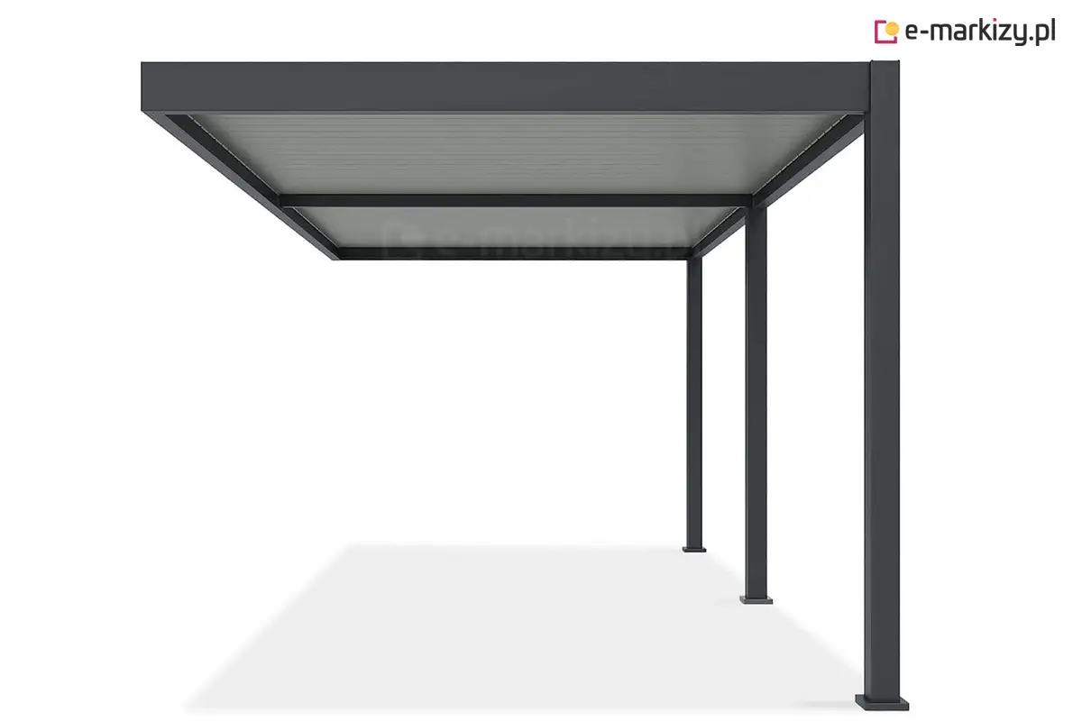 Pergola Marlo to nowoczesne rozwiązanie, które możesz dopasować do charakteru swojej przestrzeni przez wybór spośród wielu osłon zabudowujących. Możliwość wyposażenia frontu pergoli oraz jej boków (lewego lub prawego) pozwala stworzyć strefę relaksu przystosowaną do warunków otoczenia, kierunków wiatru czy nasłonecznienia. Do wyboru są rolety screen, panele żaluzjowe (stałe lub regulowane), przeszklone ściany przesuwne i inne opcje – wszystkie dopasowane tak, aby harmonijnie zintegrować się z konstrukcją Marlo.