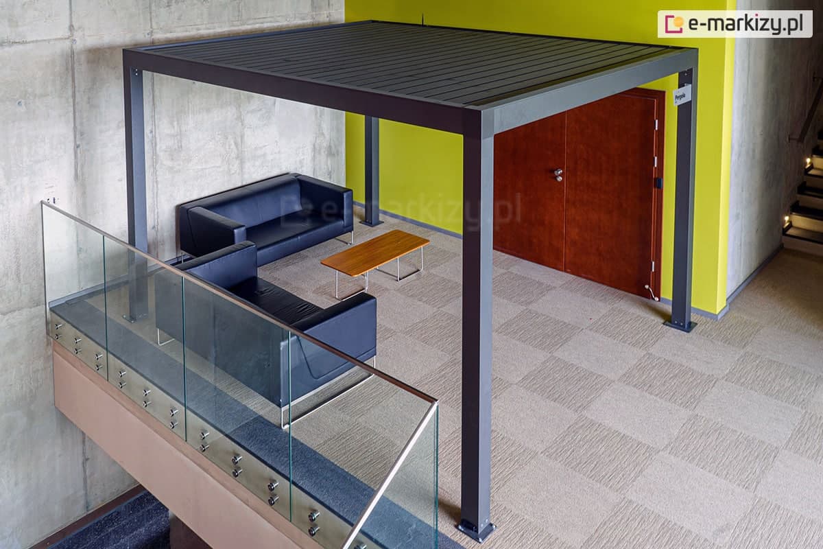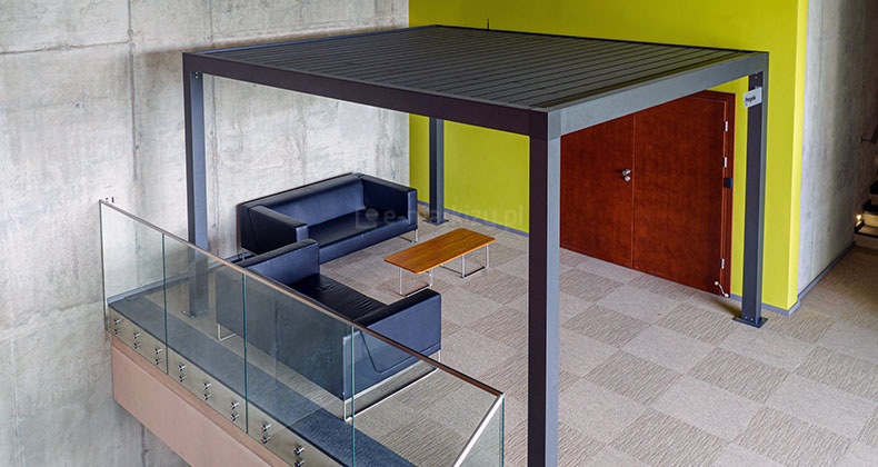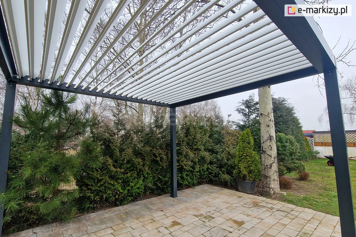 Konstrukcja pergoli wykonana została z profili aluminiowych lakierowanych proszkowo. Występuje ona w dwóch wersjach kolorystycznych do wyboru – pergola metalowa biała i antracytowa. Obie wersje kolorystyczne pozwalają na dopasowanie zadaszenia do dowolnej przestrzeni, zarówno o bardziej nowoczesnym, jak i rustykalnym charakterze. Kolory konstrukcji i lameli mogą być mieszane.
