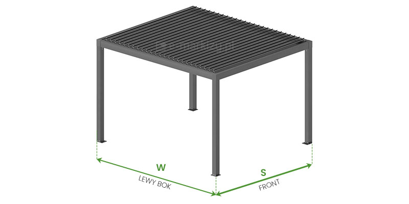 Pergola posiada stałą szerokość 350cm, a największy możliwy wysięg to 475cm