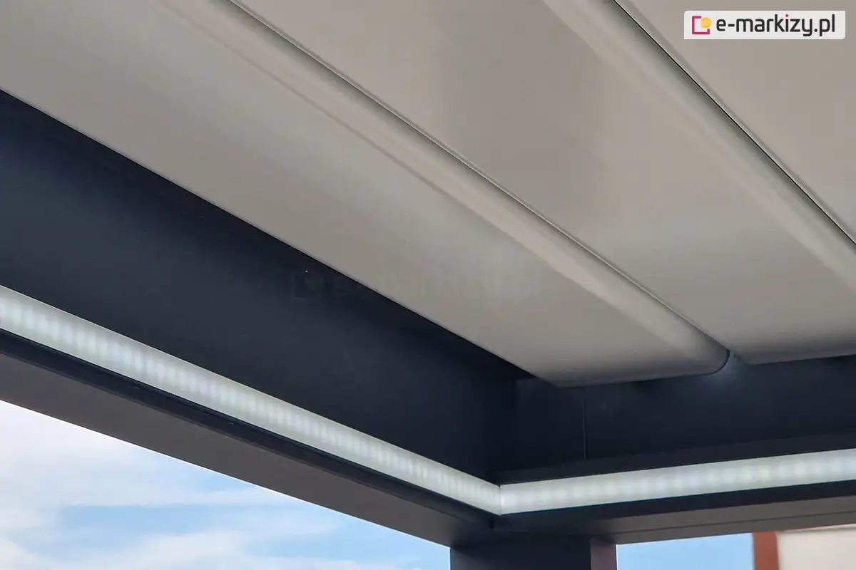 Dla każdej pergoli tarasowej możemy dedykować oświetlenie ledowe. Mogą to być rozwiązania systemowe lub dodatkowe elementy niesystemowe np. w postaci listew lub punktów świetlnych.
