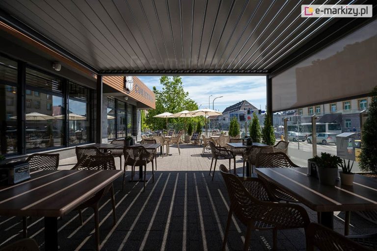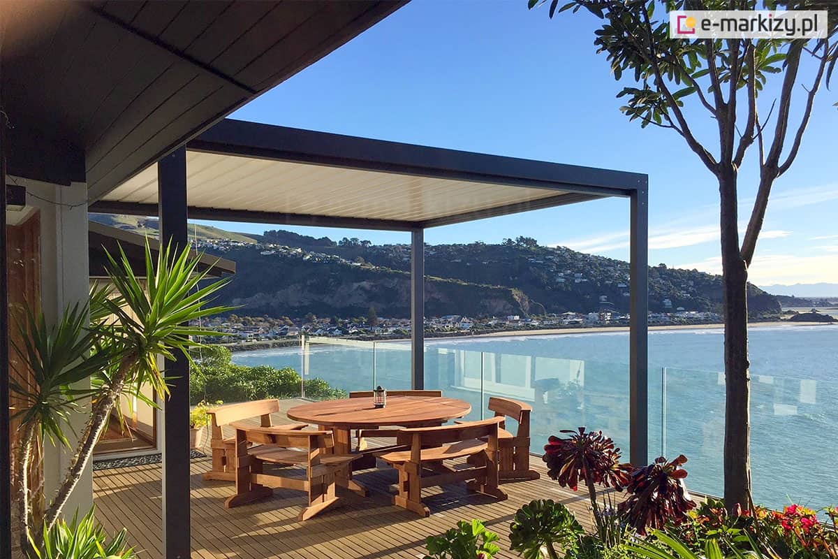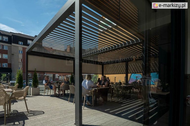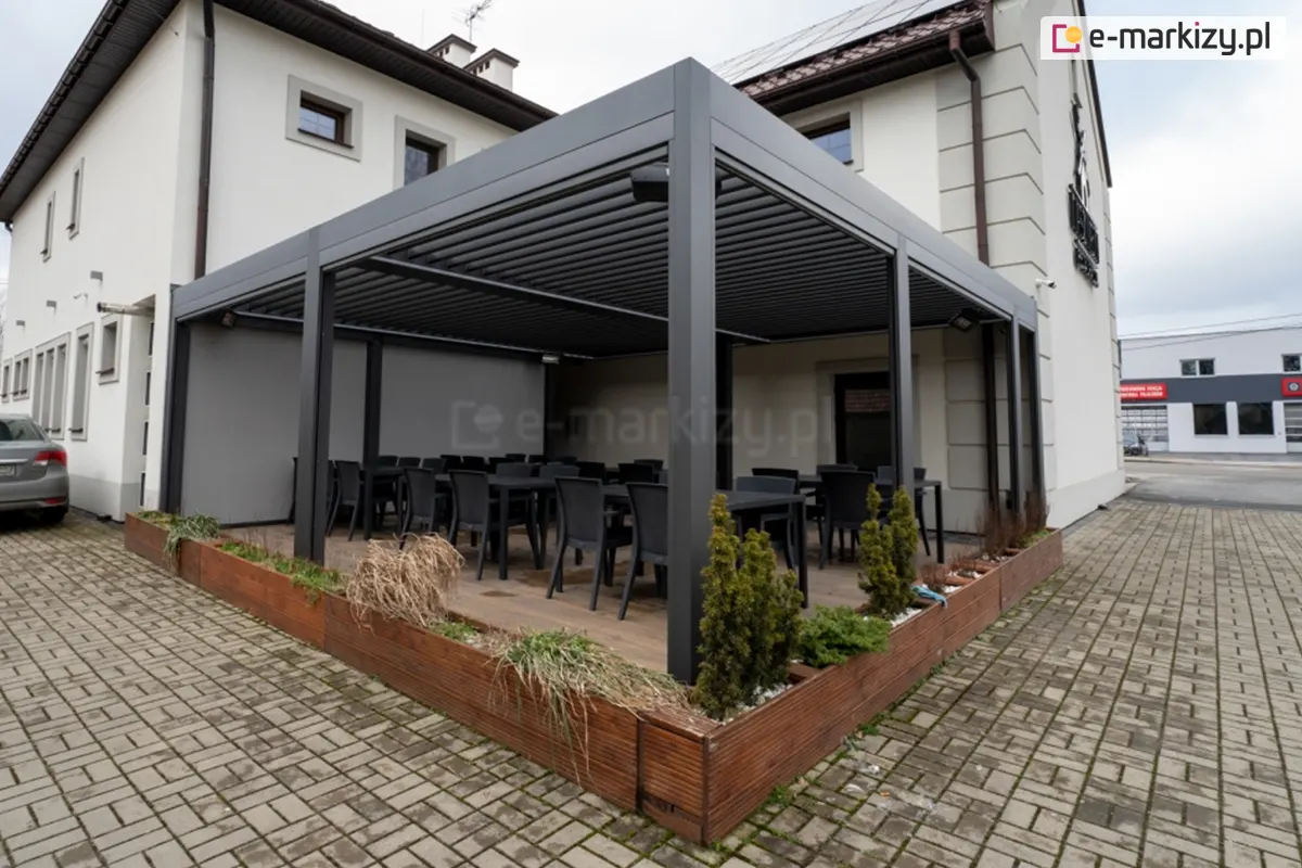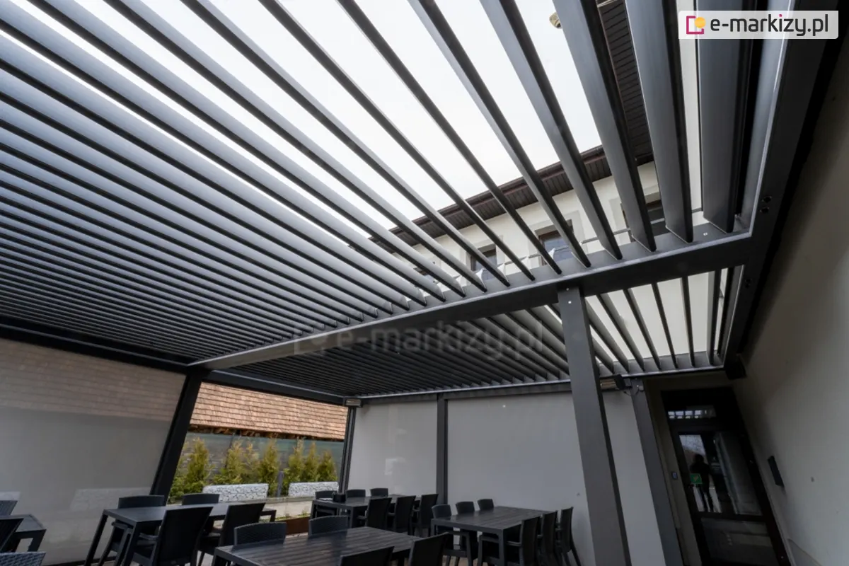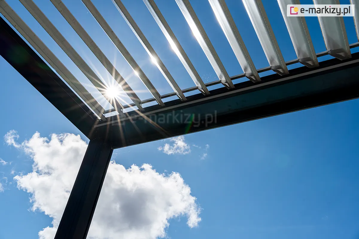 Osłanianie tarasu przed bezpośrednimi promieniami słonecznymi pozwala utrzymać niższą temperaturę na tarasie, co jest szczególnie ważne w gorące dni. Dzięki temu taras staje się bardziej komfortowym miejscem do relaksu i spędzania czasu na świeżym powietrzu. Oprócz ochrony przed słońcem, pergola sunbreaker lamelowa SB 400 z zamkniętymi piórami może także chronić przed deszczem, co umożliwia korzystanie z tarasu nawet w dni deszczowe.