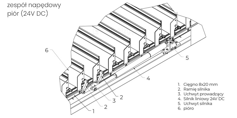 Napęd pergoli bioklimatycznej SB350 to Somfy Pergola (V 24 DC) umożliwiający obrót lameli w zakresie od 0 do 120 stopni.