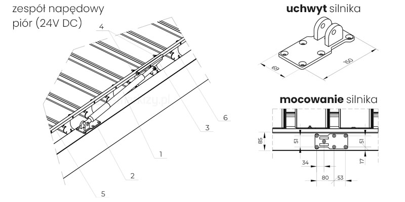 1. silnik liniowy 24V DC siła 600N