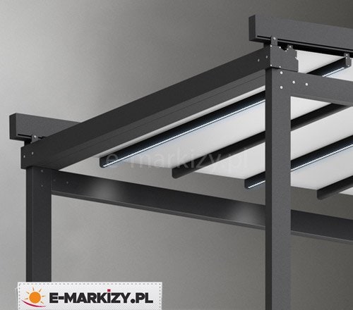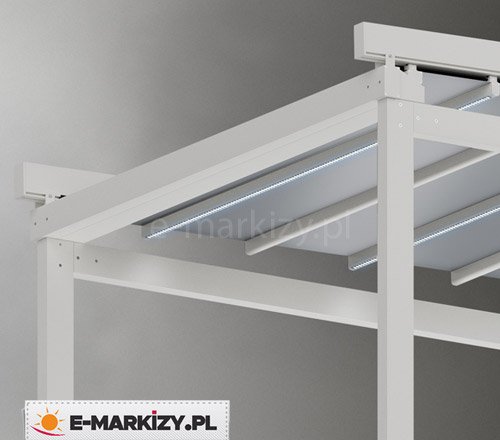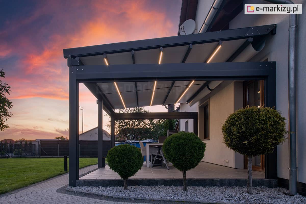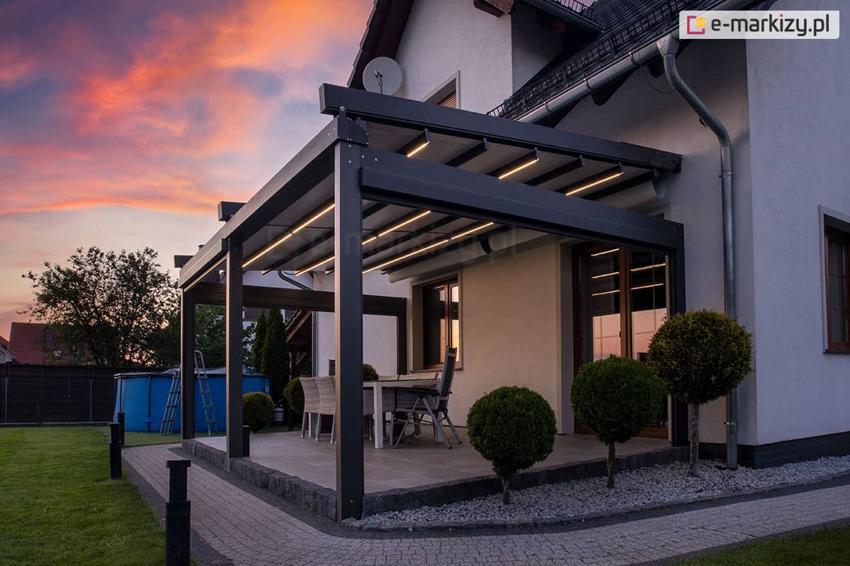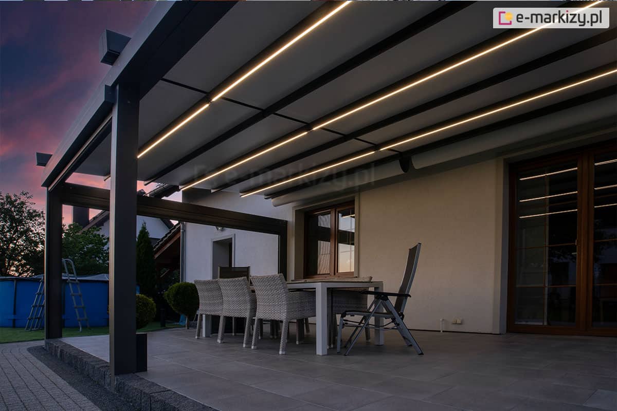 Dla każdej pergoli tarasowej możemy dedykować oświetlenie ledowe. Mogą to być rozwiązania systemowe lub dodatkowe elementy niesystemowe np. w postaci listew lub punktów świetlnych.