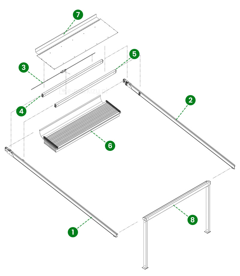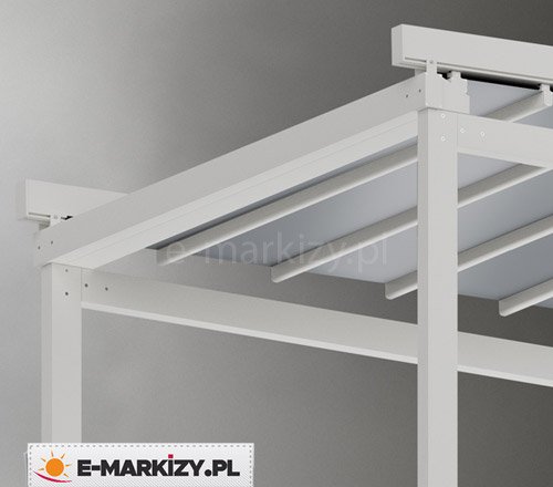 - Standardowo pergola wyposażona jest w napęd elektryczny, który automatycznie zwija osłonę. Do pergoli można dobrać Pilot bezprzewodowy