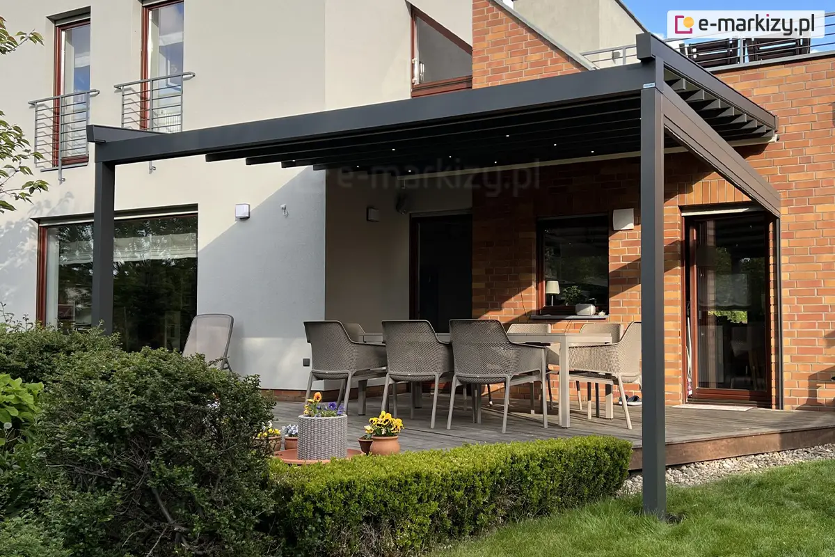 Pergola ogrodowa może być wyposażona w wiele dodatkowych opcji. Aby zobaczyć więcej i wycenić dodatkowe opcje, skonfiguruj swoją osłonę tarasu.