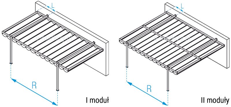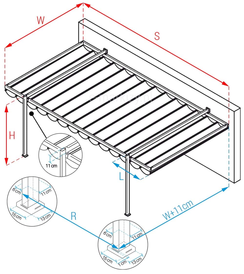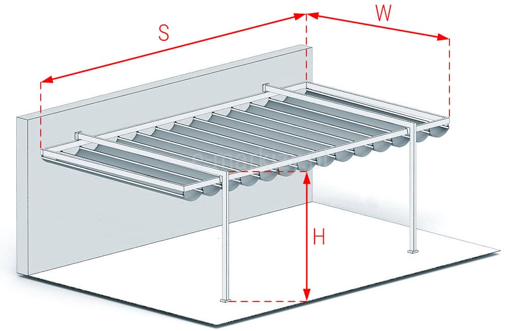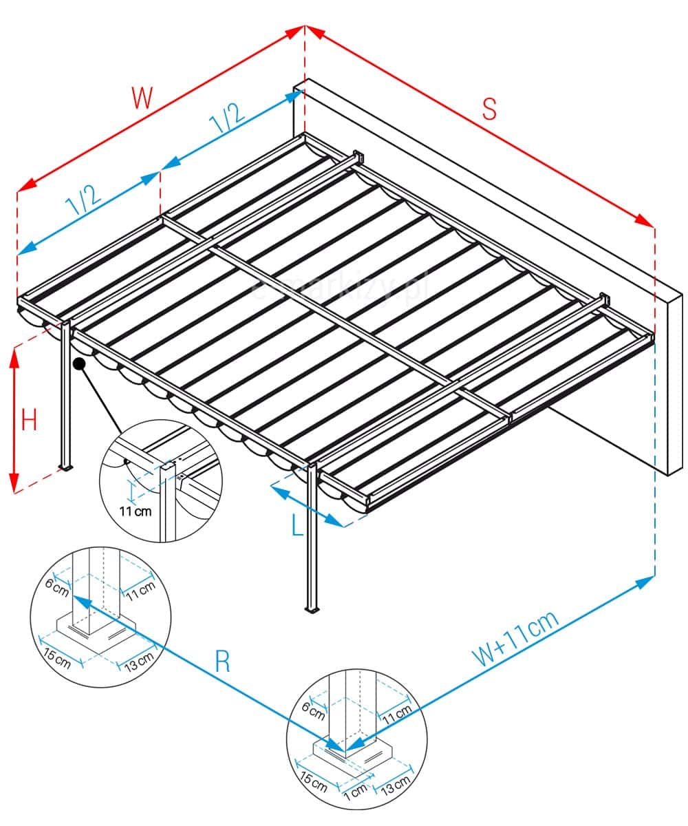 W – wysięg pergoli