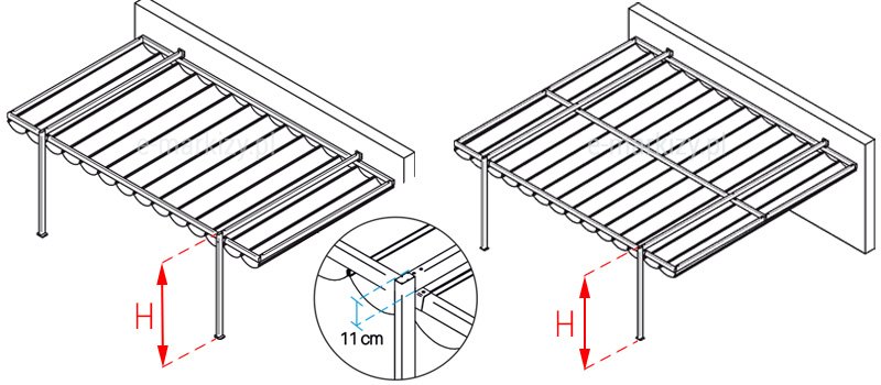 (Linia dachu pergoli jest obniżona o 11cm)