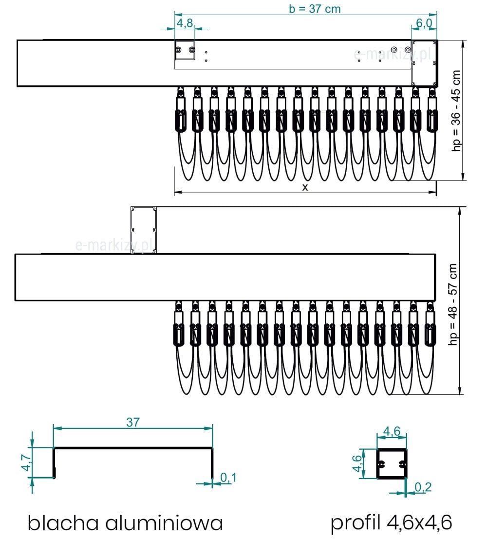 b – stały wysięg daszka systemowego