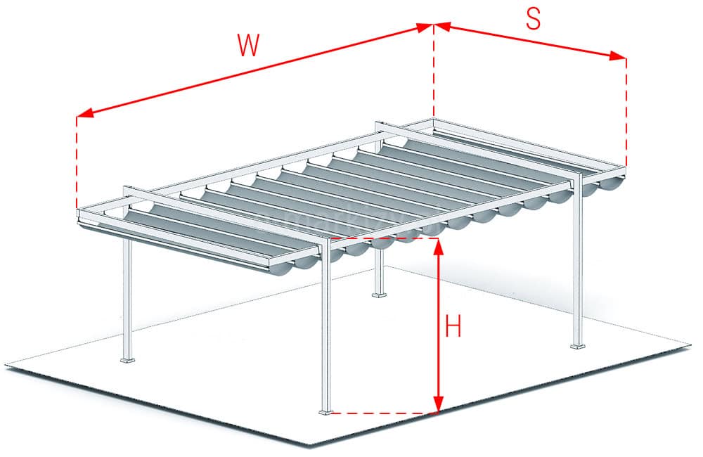 H – wysokość słupa pergoli (należy podać jego wysokość w zakresie od 260 do 350cm – bez dopłaty)