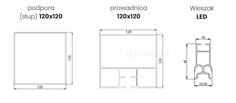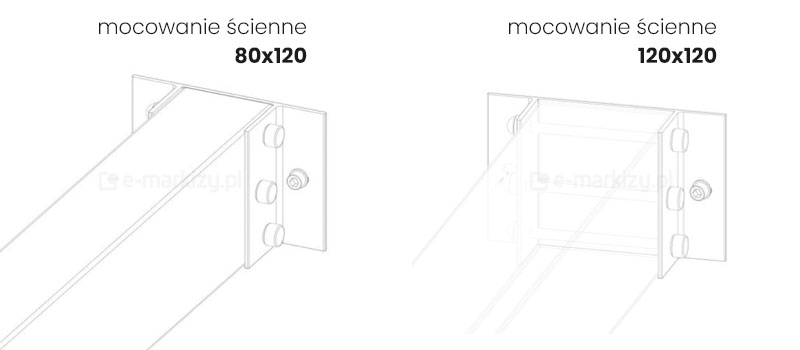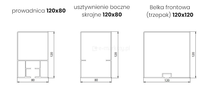 Rozmieszczenie prowadnic aluminiowych 120×120