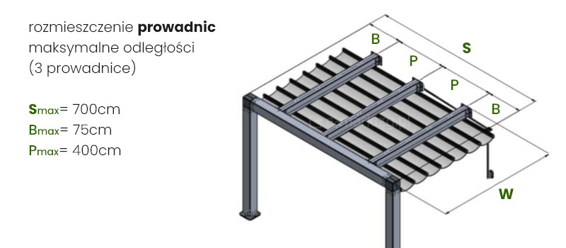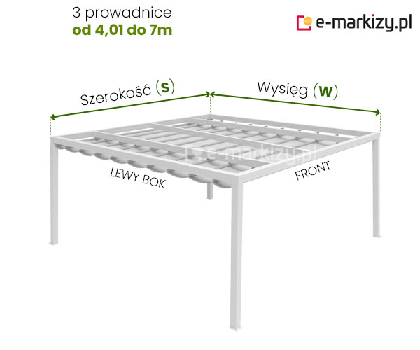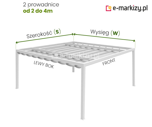 S= szerokość całkowita (max. 400cm dla jednego modułu, max 700cm dla dwóch modułów)