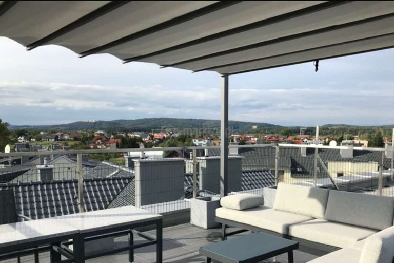Pergola Dragon to składane zadaszenie skonstruowane z myślą o dużej powierzchni tarasu lub ogrodu restauracji. Minimalistyczny, przemyślany design bez widocznych śrub i elementów mechanicznych sprawia wrażenie eleganckiego i nowoczesnego zadaszenia. Pergola Tarasowa Przyścienna Dragon działa również w trudnych warunkach atmosferycznych. Opcjonalnie pergolę można wyposażyć daszek ochronny, który chroni tkaninę przed zabrudzeniem.