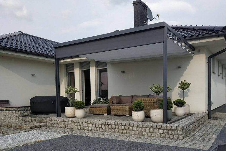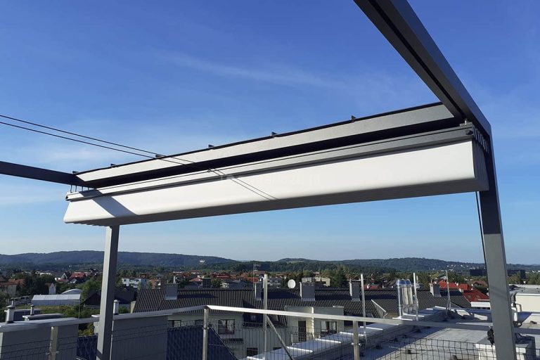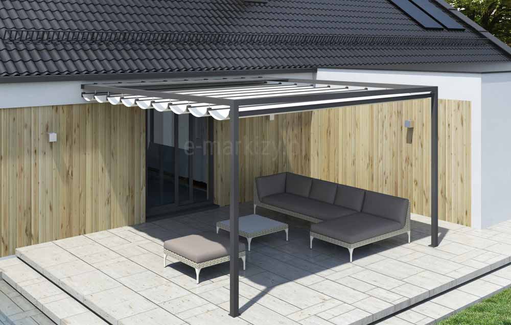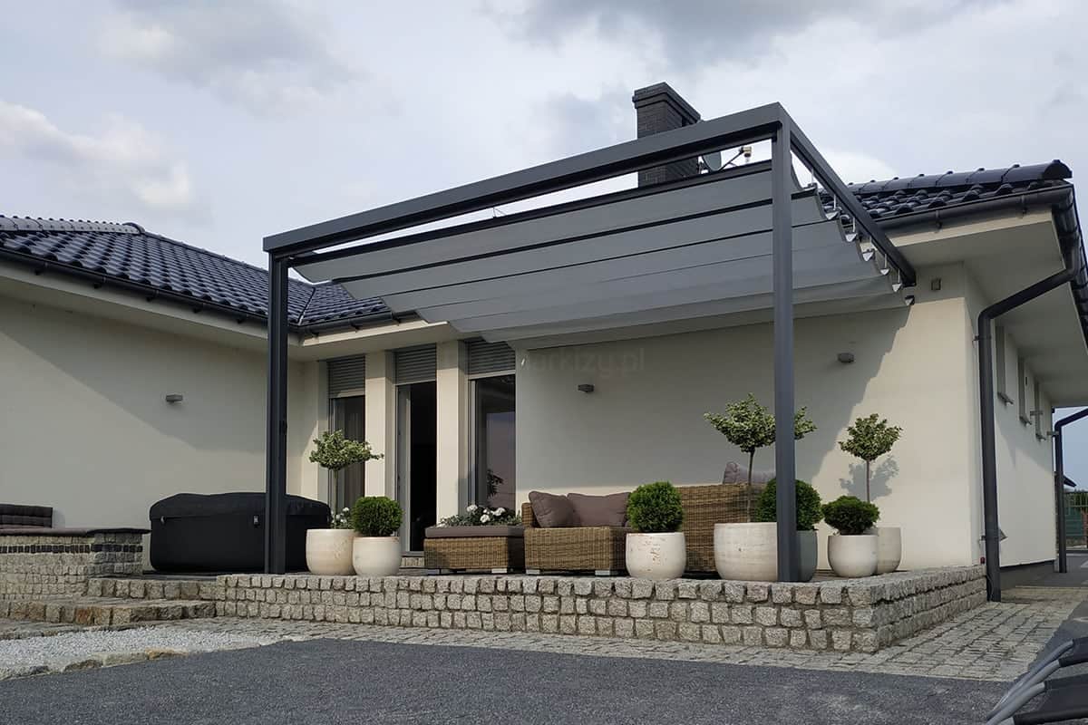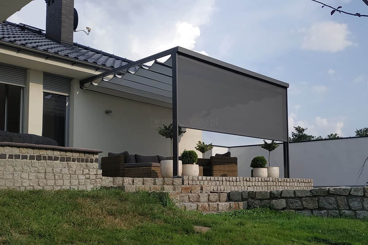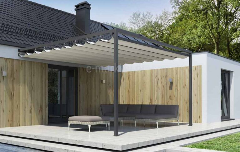Opcjonalnie można wykorzystać oczywiście inne tkaniny. Aluminiowe konstrukcje pergoli są odporne na silne podmuchy wiatru nawet powyżej 100 km/h.