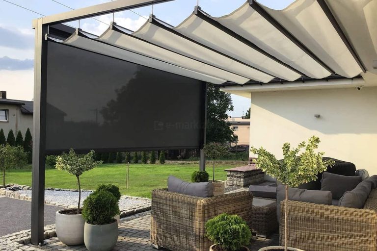 Najpopularniejszą formą zasłaniania ścian w pergolach są refleksole. To nic innego jak zewnętrzna osłona przeciwsłoneczna.