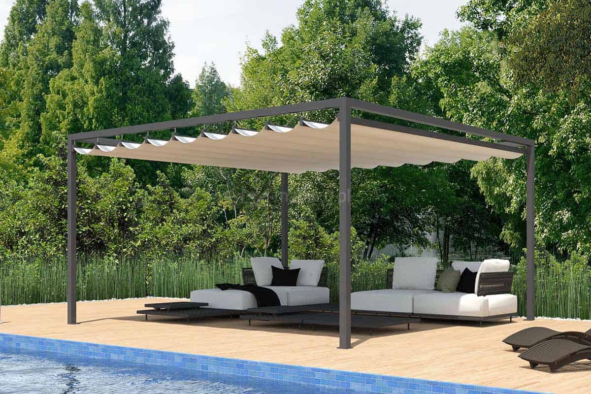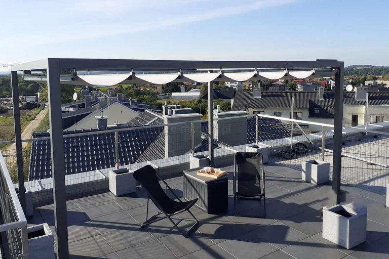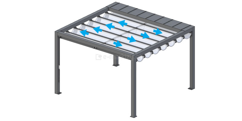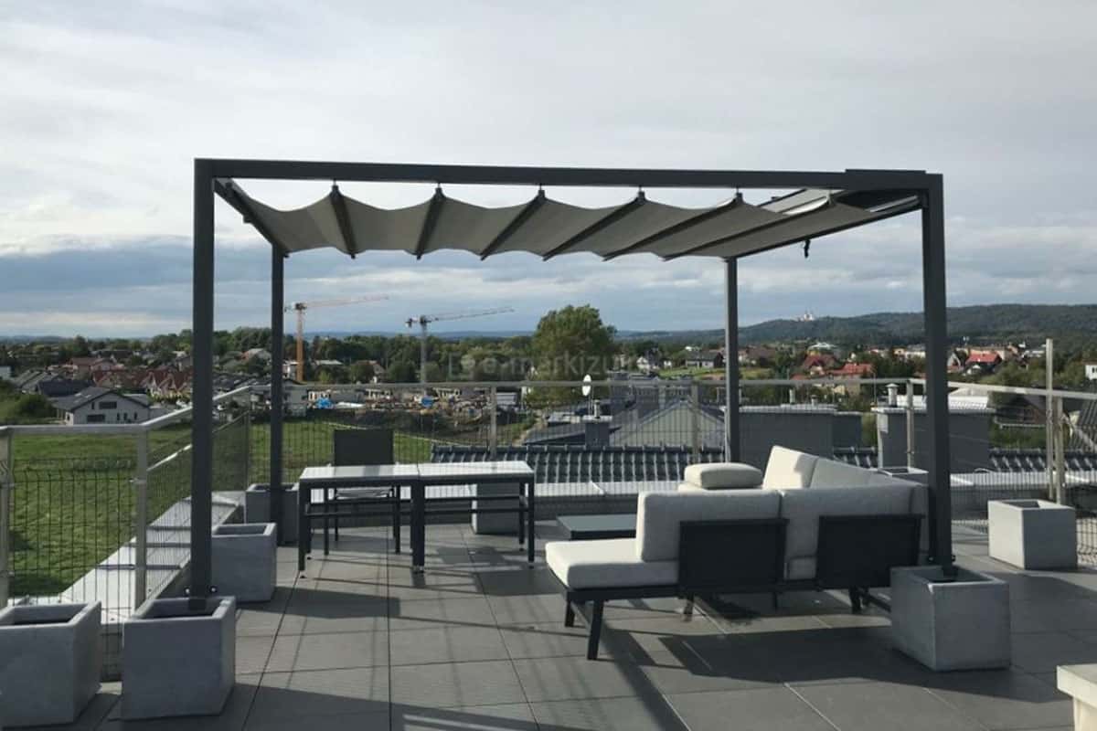 Opcjonalnie można wykorzystać oczywiście inne tkaniny. Aluminiowe konstrukcje pergol są odporne na silne podmuchy wiatru nawet powyżej 100 km/h.