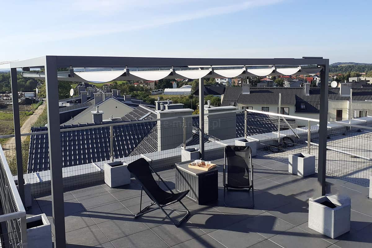 Pergola tarasowa wolnostojąca Dragon przeznaczona jest dla zadaszenia powierzchni nie przekraczającej szerokości 6 metrów i wysięgu 4,6 metrów.