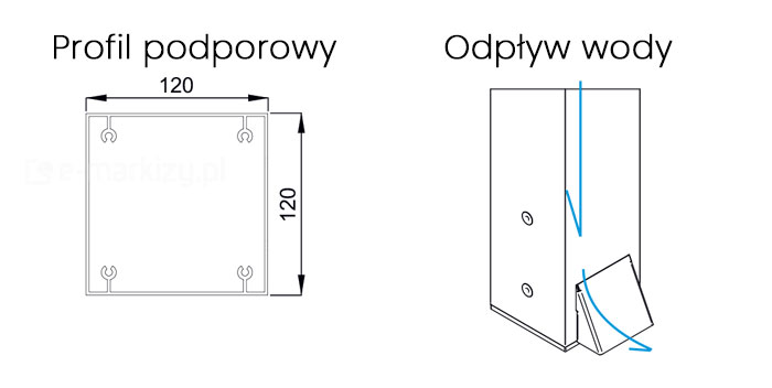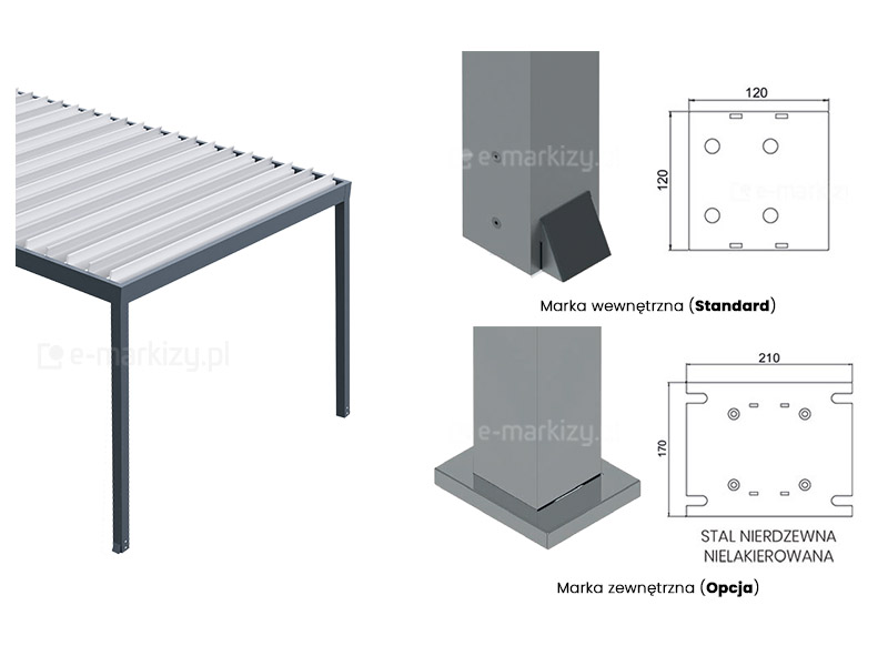 Konstrukcja pergoli doposażona jest w dwie dodatkowe nogi w następujących przypadkach: