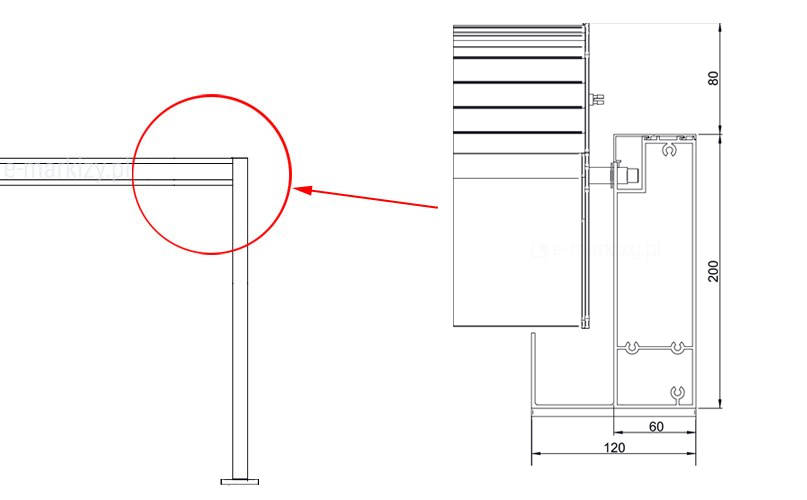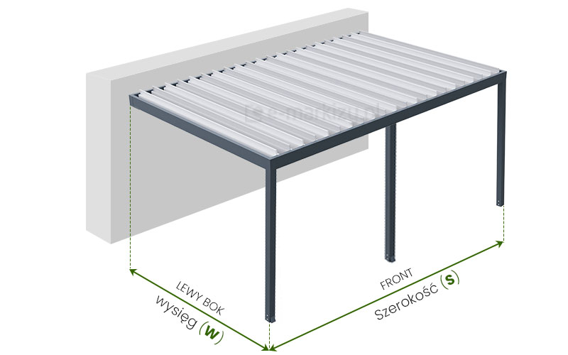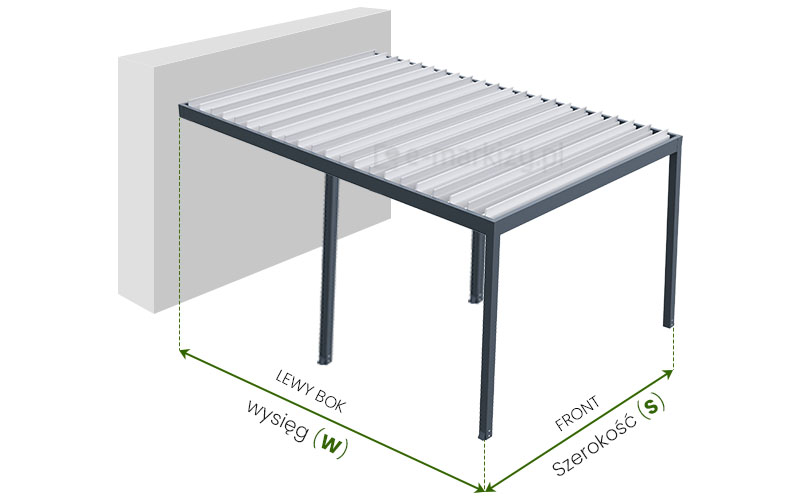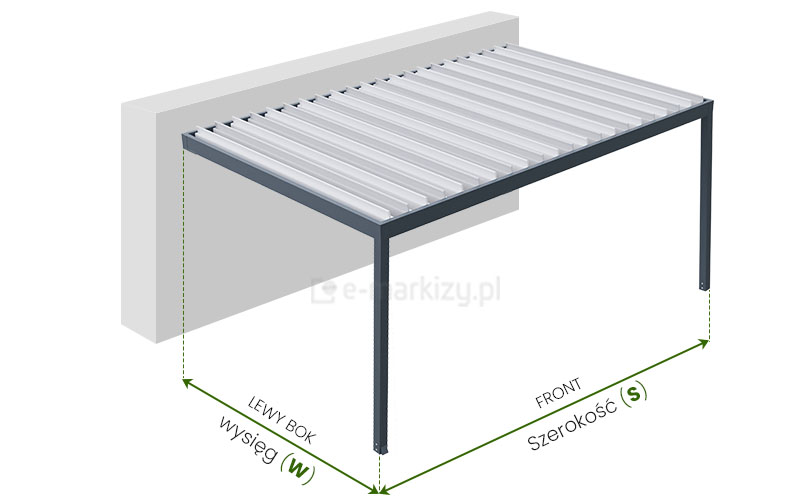 Pergola Tarasowa Essential Lamelowa Przyścienna Pomiar i Dane Techniczne