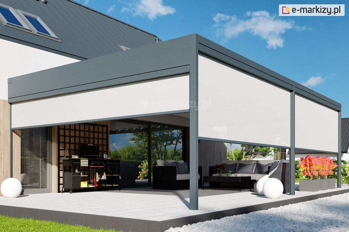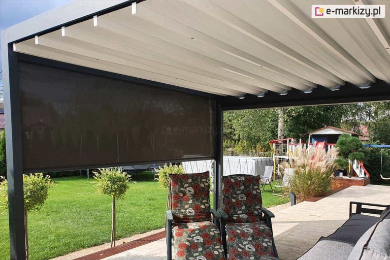Najpopularniejszą formą zasłaniania ścian w pergolach są refleksole. To nic innego jak zewnętrzna osłona przeciwsłoneczna.