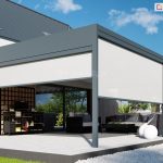 Konstrukcja pergoli Luxury wyróżnia się lekkością, minimalistyczną formą i perfekcyjnym zachowaniem kątów prostych, dzięki czemu idealnie komponuje się z nowoczesnymi bryłami budynków. Jej poziomy dach, osadzony na solidnym aluminiowym stelażu, można swobodnie składać lub rozkładać, dopasowując pergolę do aktualnych potrzeb. Po rozłożeniu zapewnia niezawodną ochronę przed deszczem, ogranicza nagrzewanie i skutecznie zacienia przestrzeń, natomiast po złożeniu pozwala w pełni cieszyć się słońcem i dobrą pogodą.