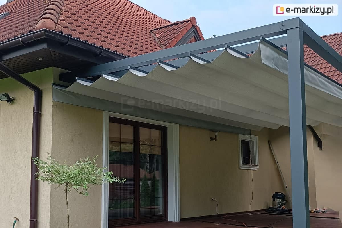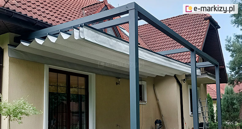 Konstrukcja składa się z dwóch aluminiowych podpór, aluminiowego kołnierza dachu oraz dwóch lub trzech prowadnic aluminiowych, do których podwieszane są wózki z tkaniną. Ilość podpór oraz prowadnic może zostać zwiększona podczas zamawiania pergoli.