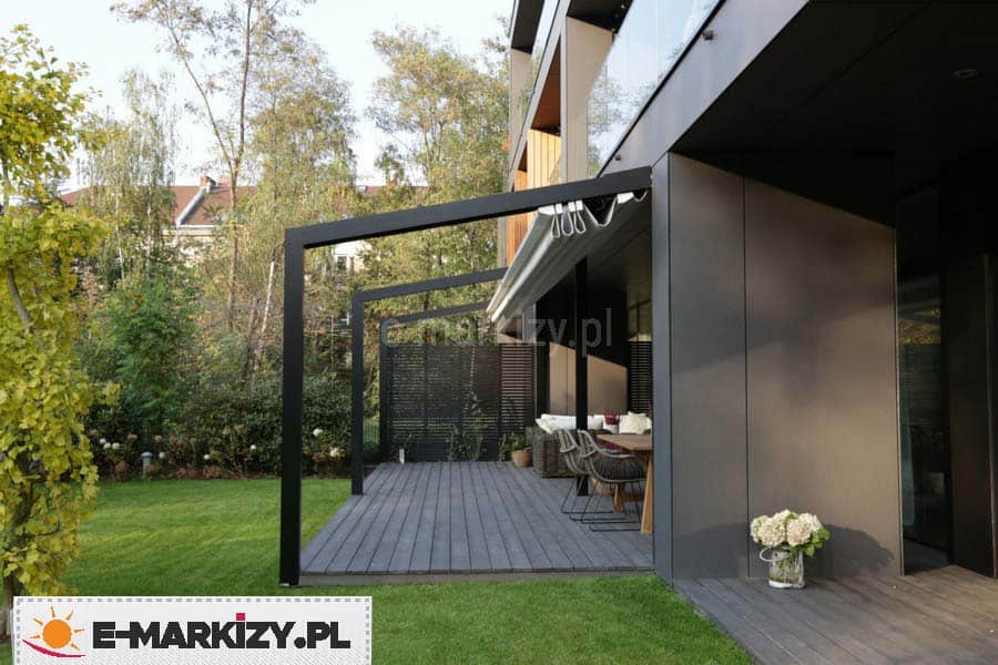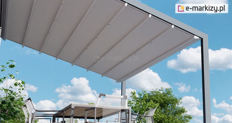 Opcjonalnie można wykorzystać oczywiście inne tkaniny. Aluminiowe konstrukcje pergol są odporne na silne podmuchy wiatru nawet powyżej 100 km/h.