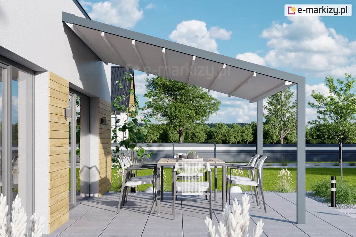 Minimalistyczna konstrukcja pergoli Light to doskonała propozycja od firmy Tarasola dla mniejszych i średnich tarasów przydomowych. Oszczędna w elementach tania pergola tarasowa przyścienna Tarasola Light, jest stabilnym modelem posiadającym wiele użytecznych cech, takich jak napęd elektryczny w standardzie, możliwość zamontowania punktów ledowych i promienników ciepła. Dodatkową osłonę dla materiału tworzy wbudowany daszek systemowy, który chroni tkaninę po zwinięciu.