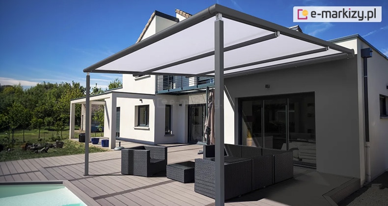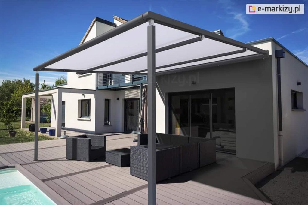 Opcjonalnie można wykorzystać oczywiście inne tkaniny. Aluminiowe konstrukcje pergol są odporne na silne podmuchy wiatru nawet powyżej 100 km/h.