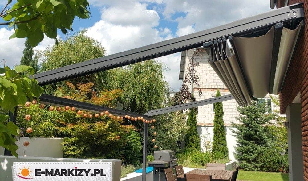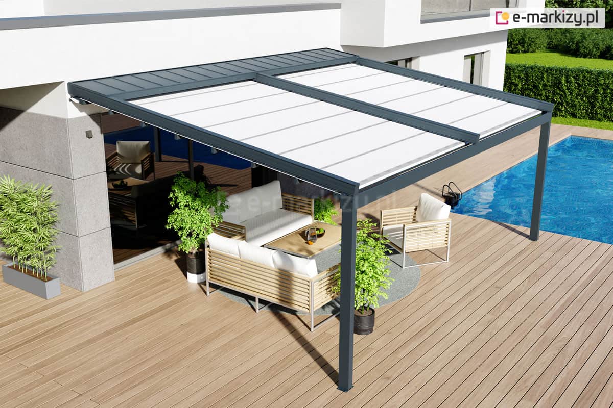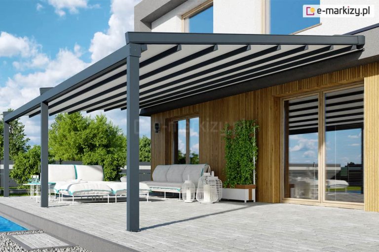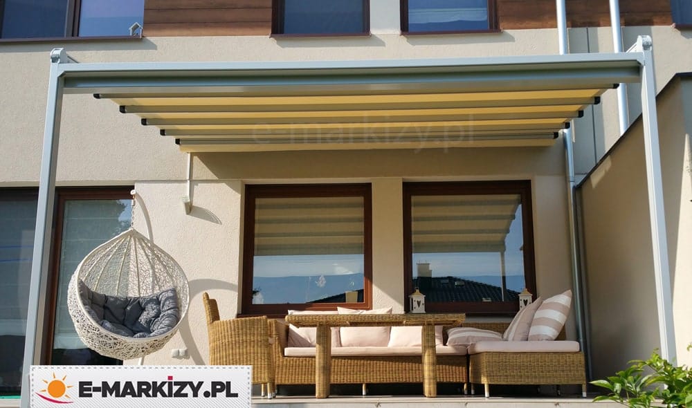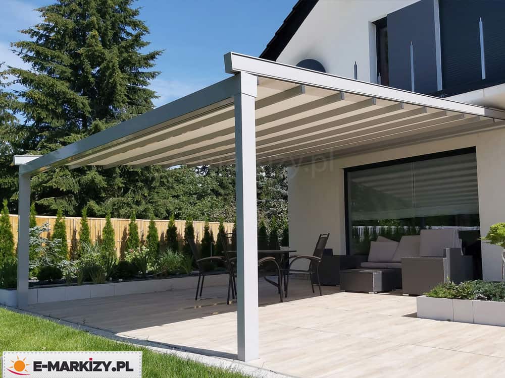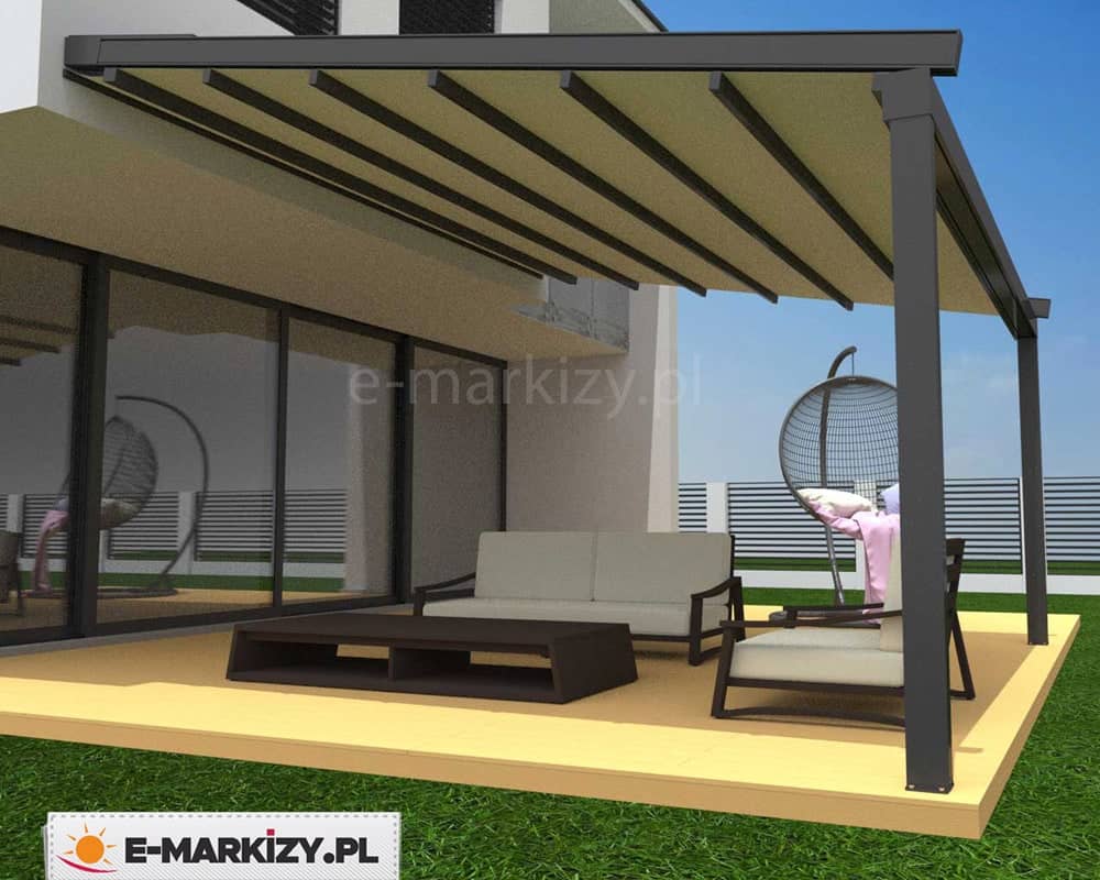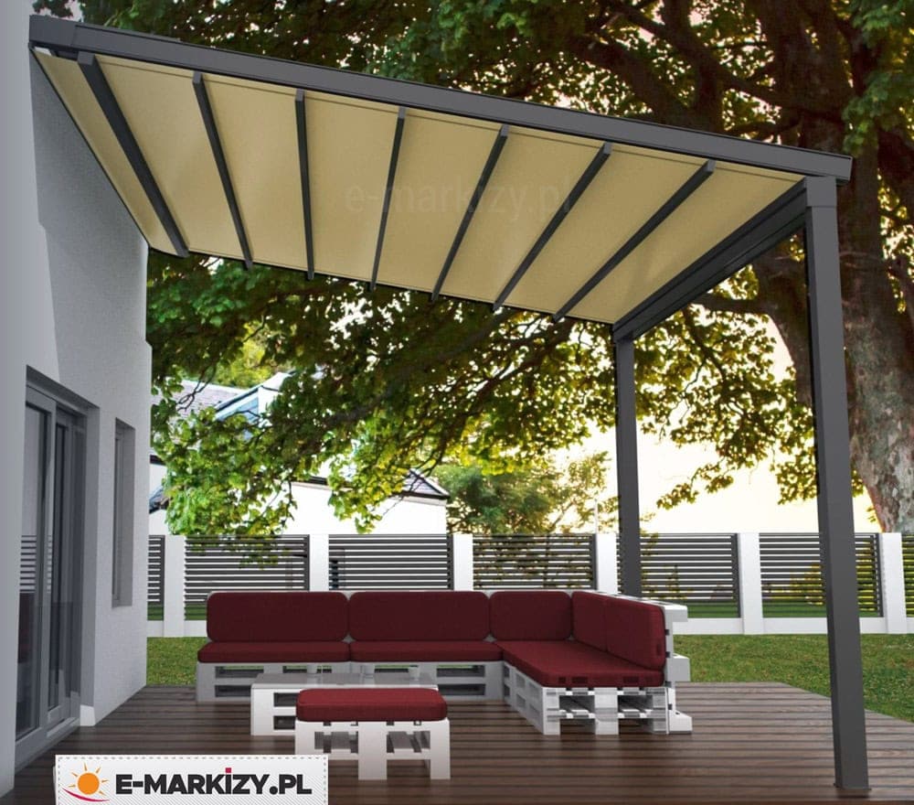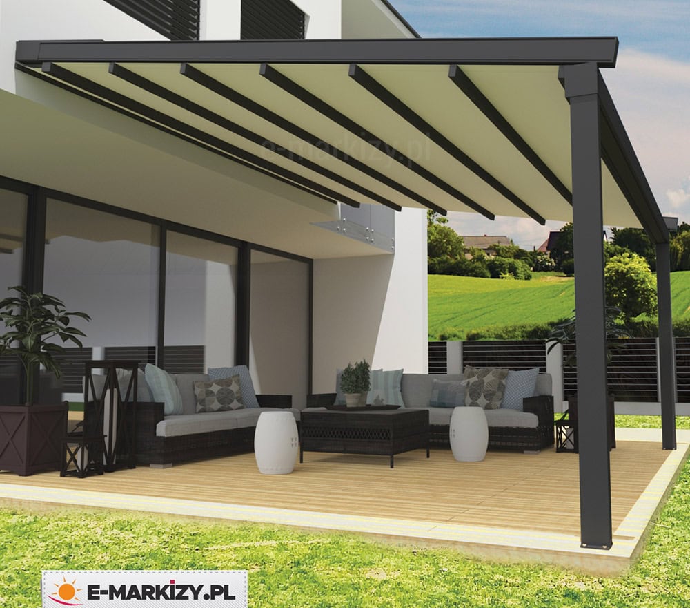Opcjonalnie można wykorzystać oczywiście inne tkaniny. Aluminiowe konstrukcje pergol są odporne na silne podmuchy wiatru nawet powyżej 100 km/h.
