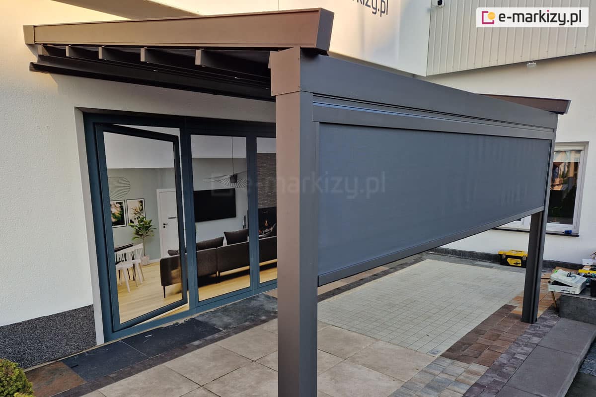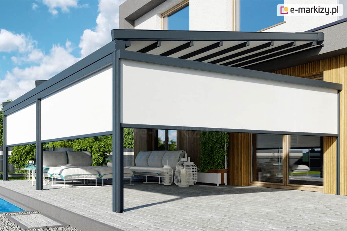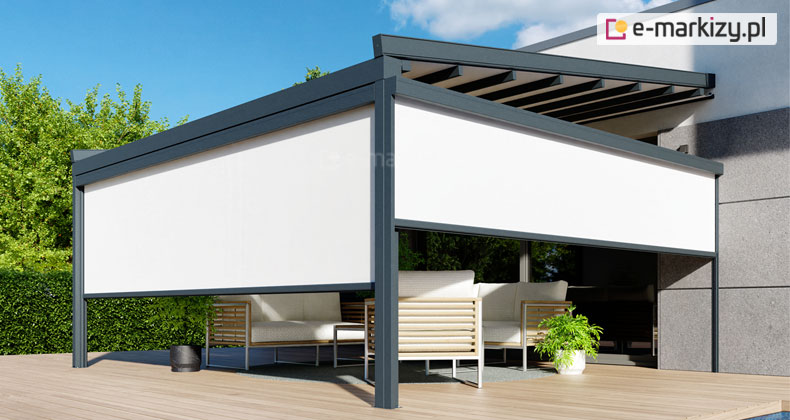 Najpopularniejszą formą zasłaniania ścian w pergolach są refleksole. To nic innego jak zewnętrzna osłona przeciwsłoneczna.