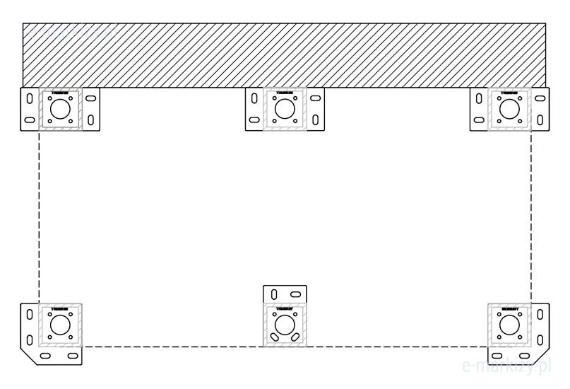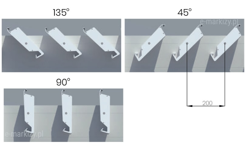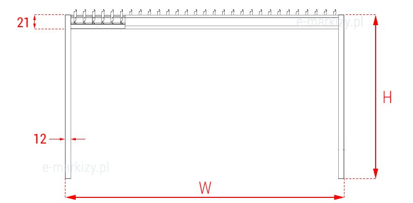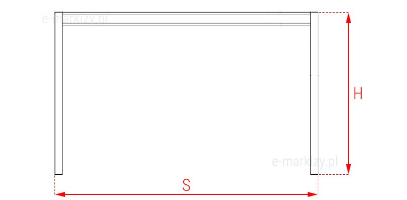 S=Szerokość pergoli H=Wysokość profila podporowego (standard 265cm)