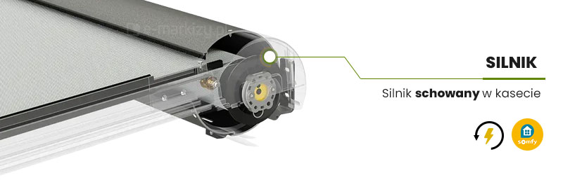 Tkanina pergoli ułożona jest w rolkowym systemie napinania i jest sterowana za pomocą napędu elektrycznego. Do silnika z wbudowaną centralką możemy podłączyć bezprzewodowego pilota oraz doinstalować czujniki pogodowe.