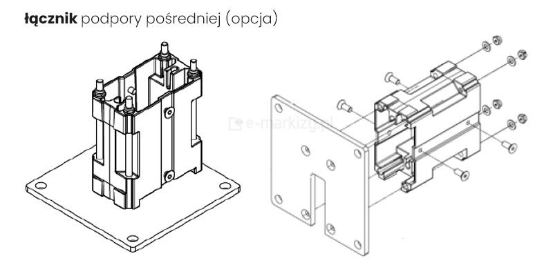 Mocowanie Podłoże nośne (słupy nośne lub uniwersalne kątowniki przyścienne)