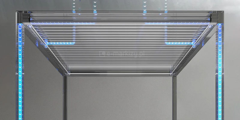 – Konstrukcja wykonana z aluminiowych profili ekstrudowanych oraz elementów ze stali nierdzewnej.