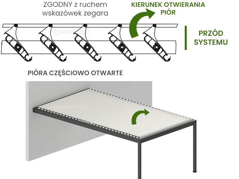 – Obrót piór dachu uruchamiany może być ręcznym przełącznikiem lub zdalnie sterowany.