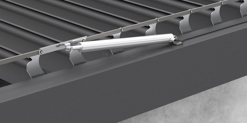 – Obracane pióra dachowe ze zintegrowanymi rynnami, sterowane elektrycznie (dwa modele silników- dwa zakresy otwarcia).