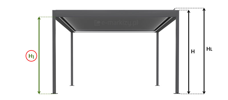 Wysokość całkowita (wraz z otwartymi lamelami, napędem, mechanizmem obrotu) HL=314cm