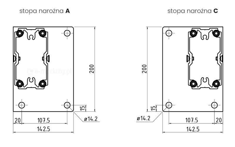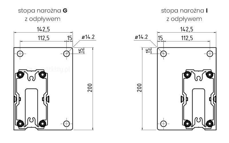 Na stronie przedstawione są wyłącznie narożne typy marek. W przypadku zastosowania dodatkowej podpory, dostępne są inne typy z obwodem wokół całej podpory.