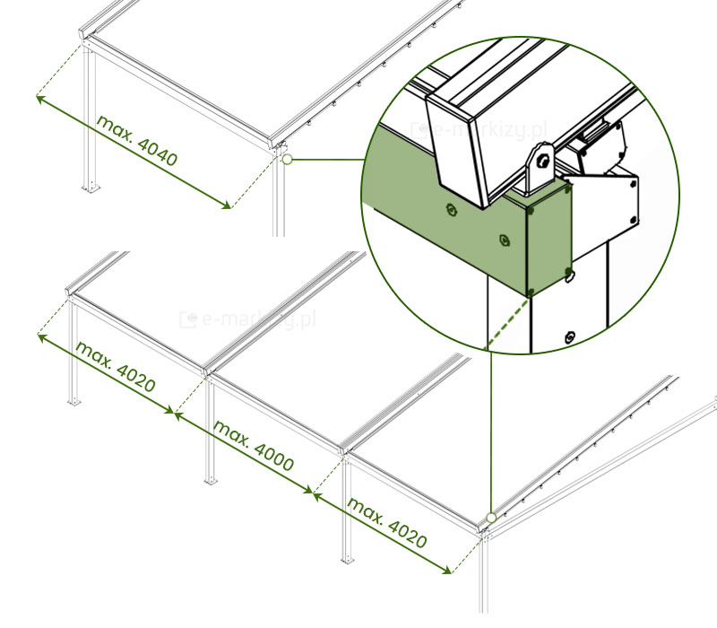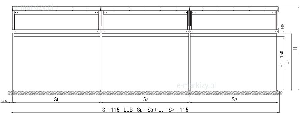 SL – szerokość skrajnego lewego modułu systemu (max 4000 mm)