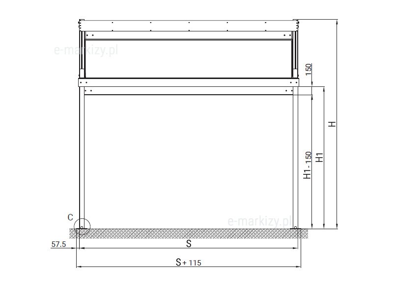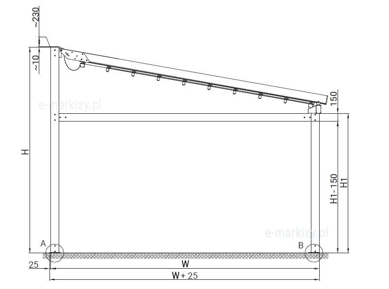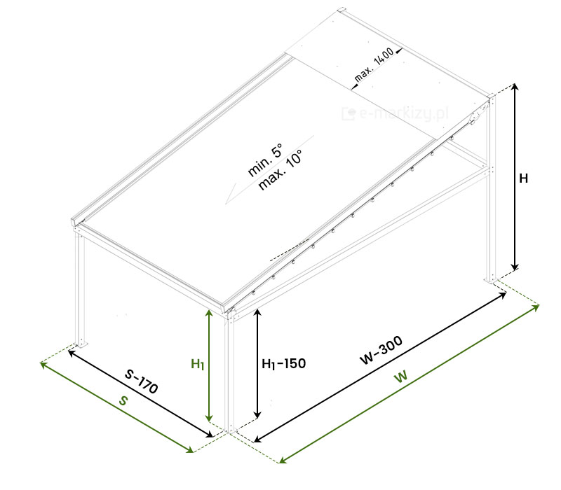 Podane wyżej wymiary odnoszą się do standardowej wysokości podpór H1 – ta może być zmieniona na życzenie klienta, w takim wypadku pozostałe wartości także ulegną zmianie.