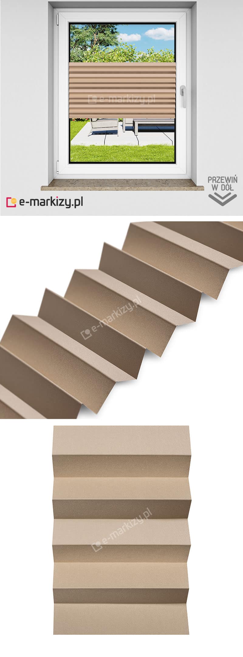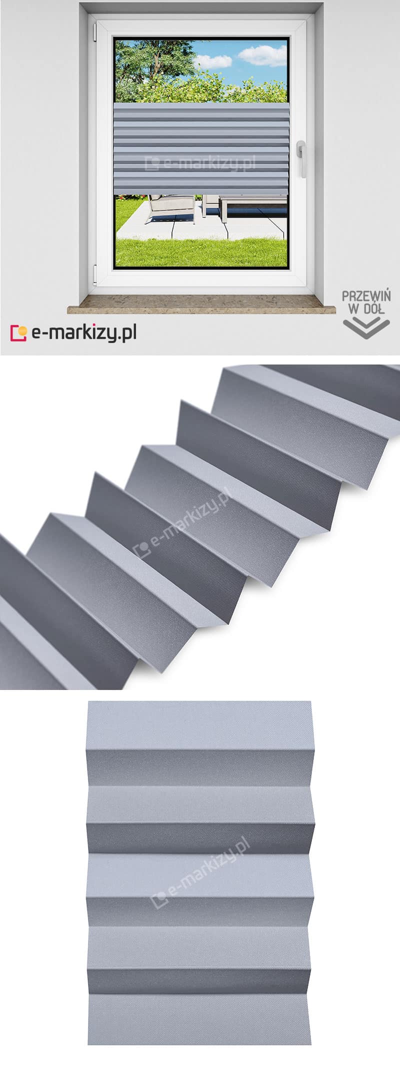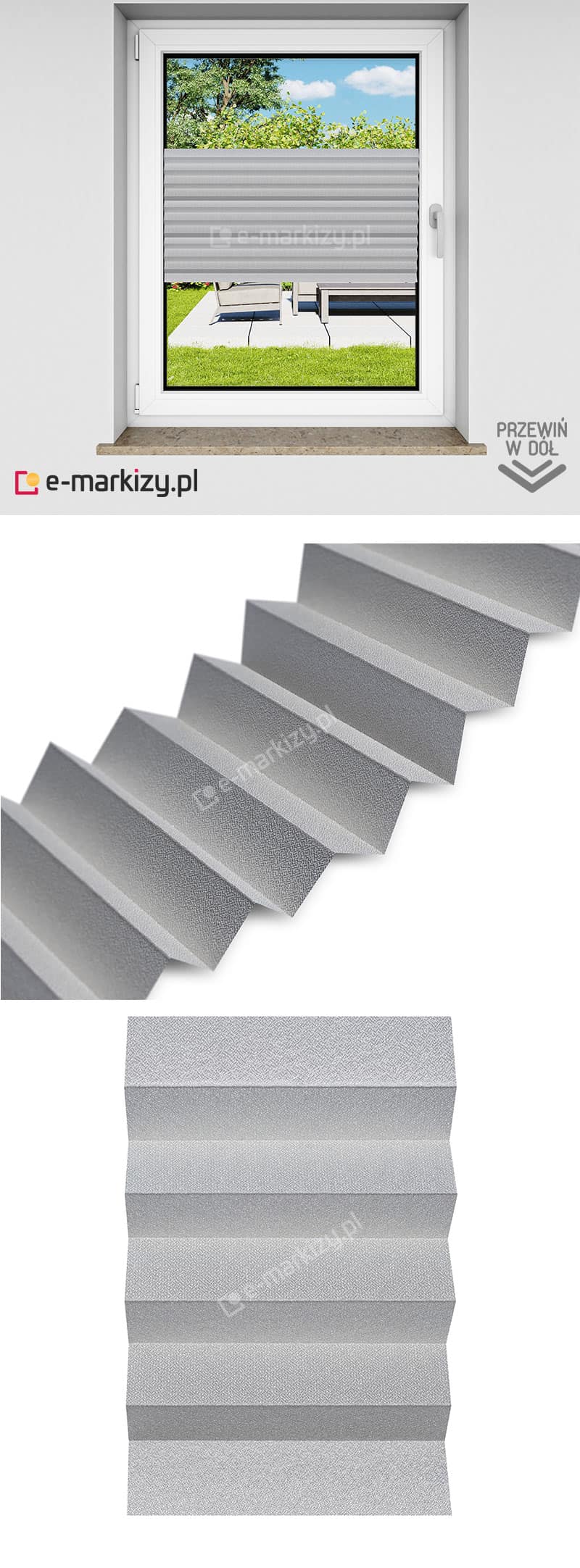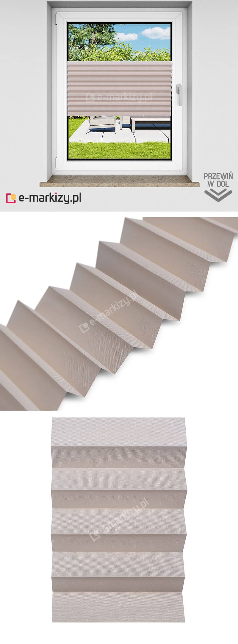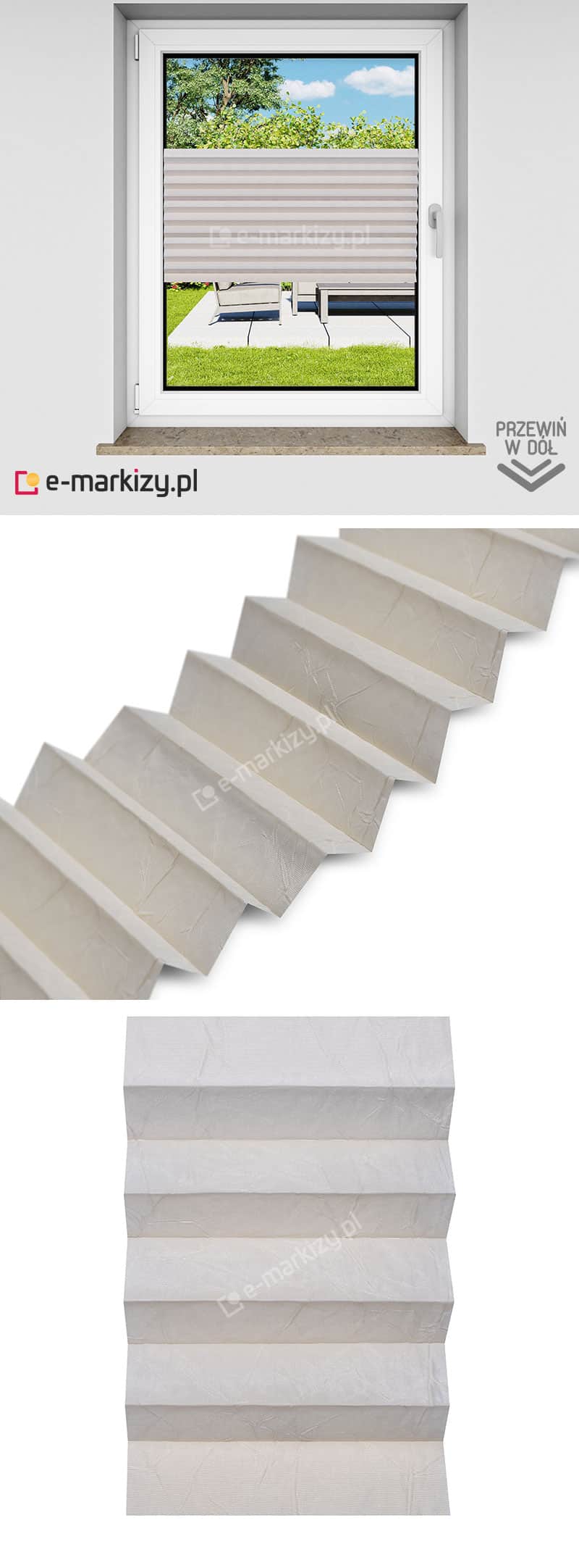 Ze względu na właściwości tkanin plisowanych, po zwinięciu mogą różnić się odcieniem od tkaniny rozwiniętej, nie stanowi to wady materiału.
