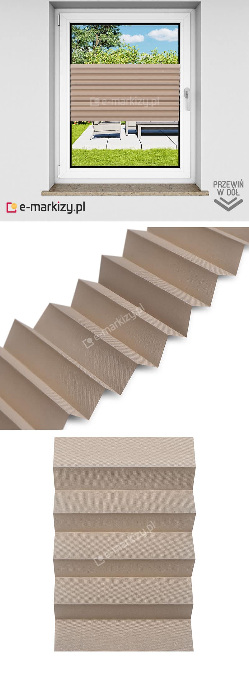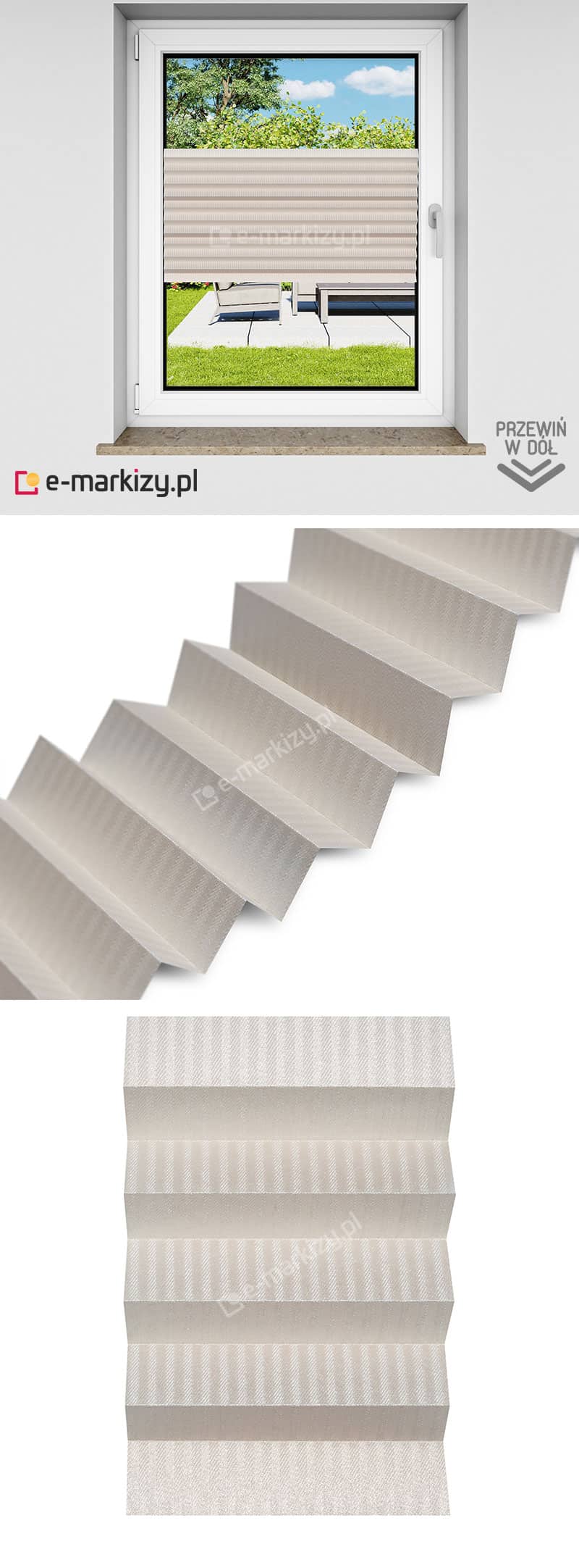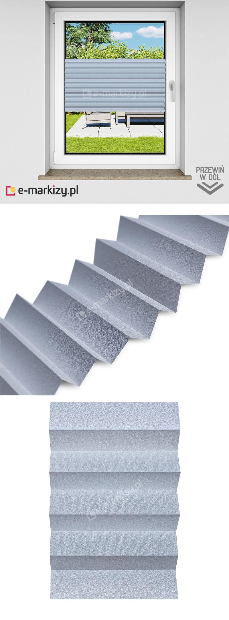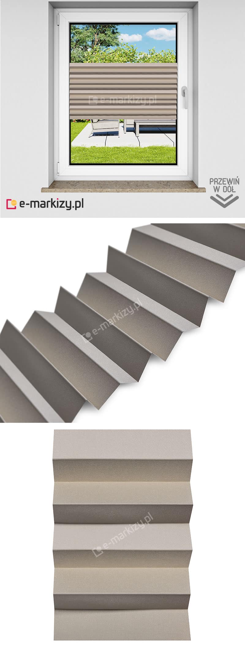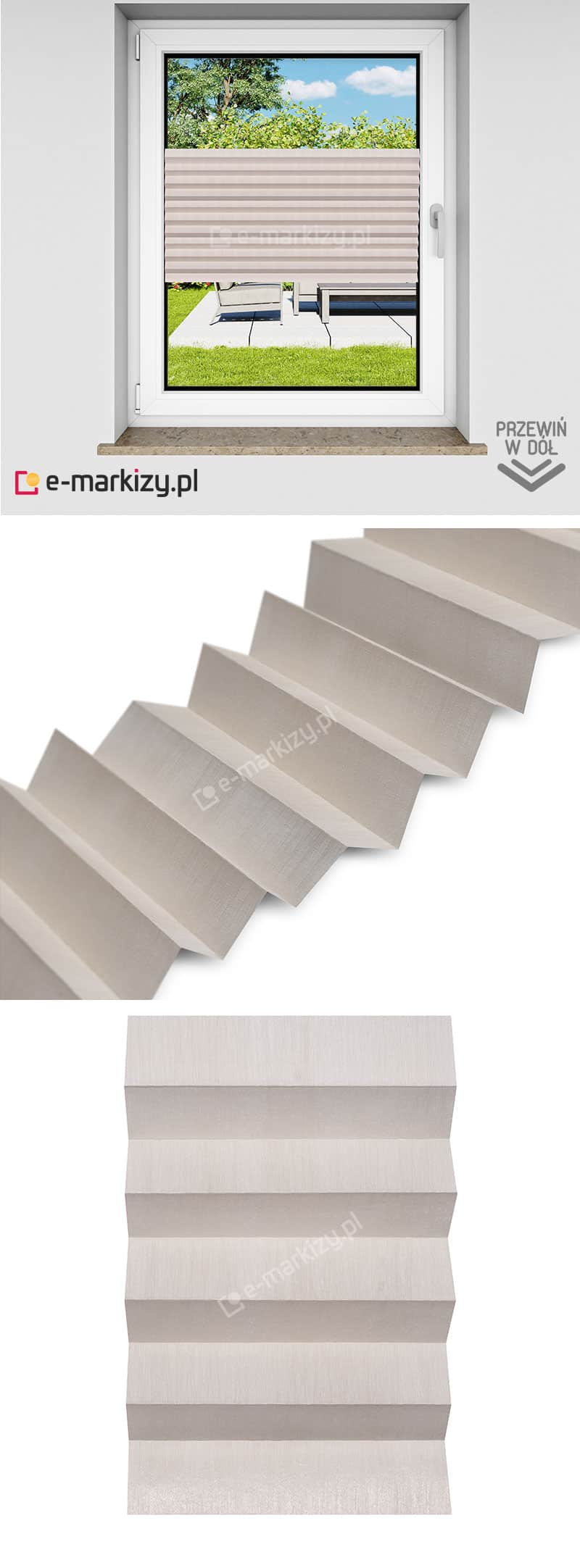 Ze względu na właściwości tkanin plisowanych, po zwinięciu mogą różnić się odcieniem od tkaniny rozwiniętej, nie stanowi to wady materiału.