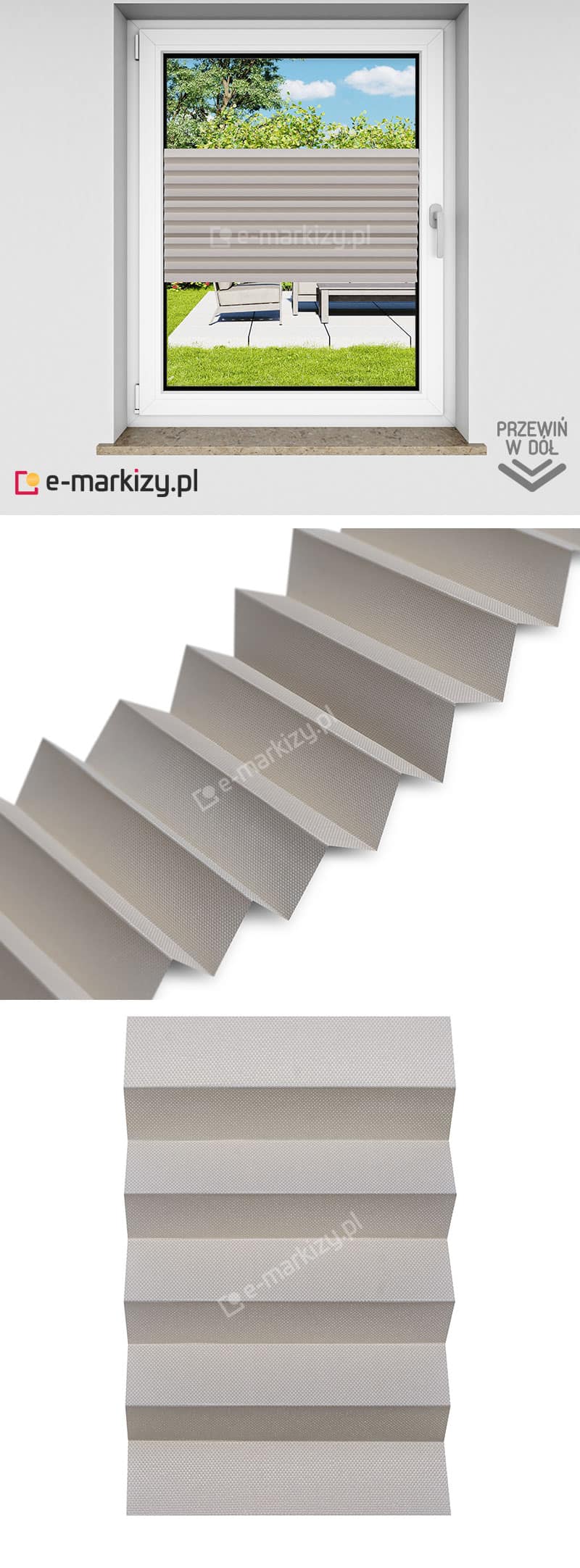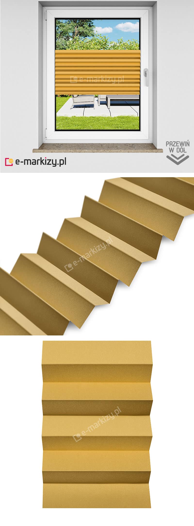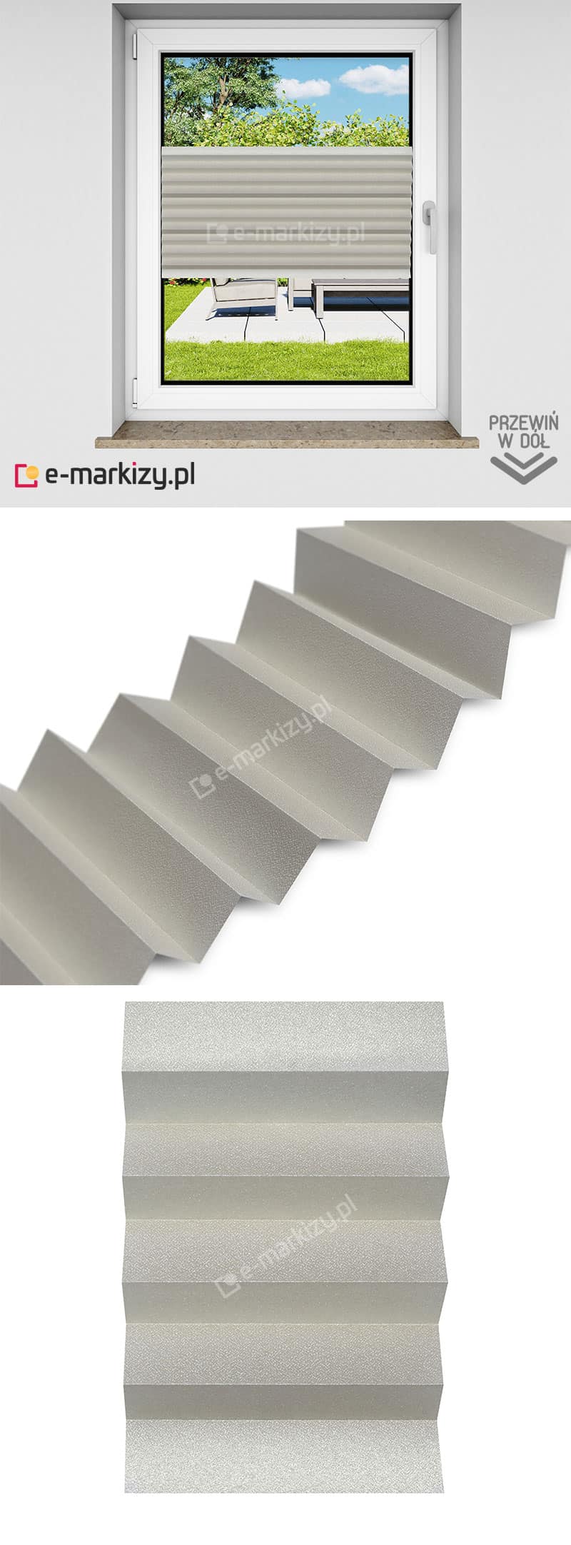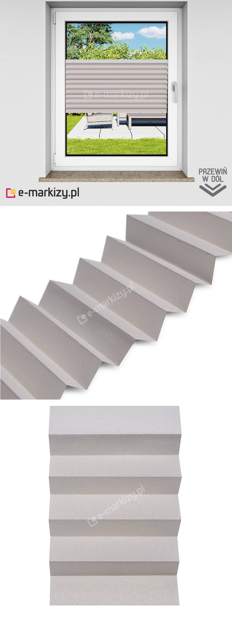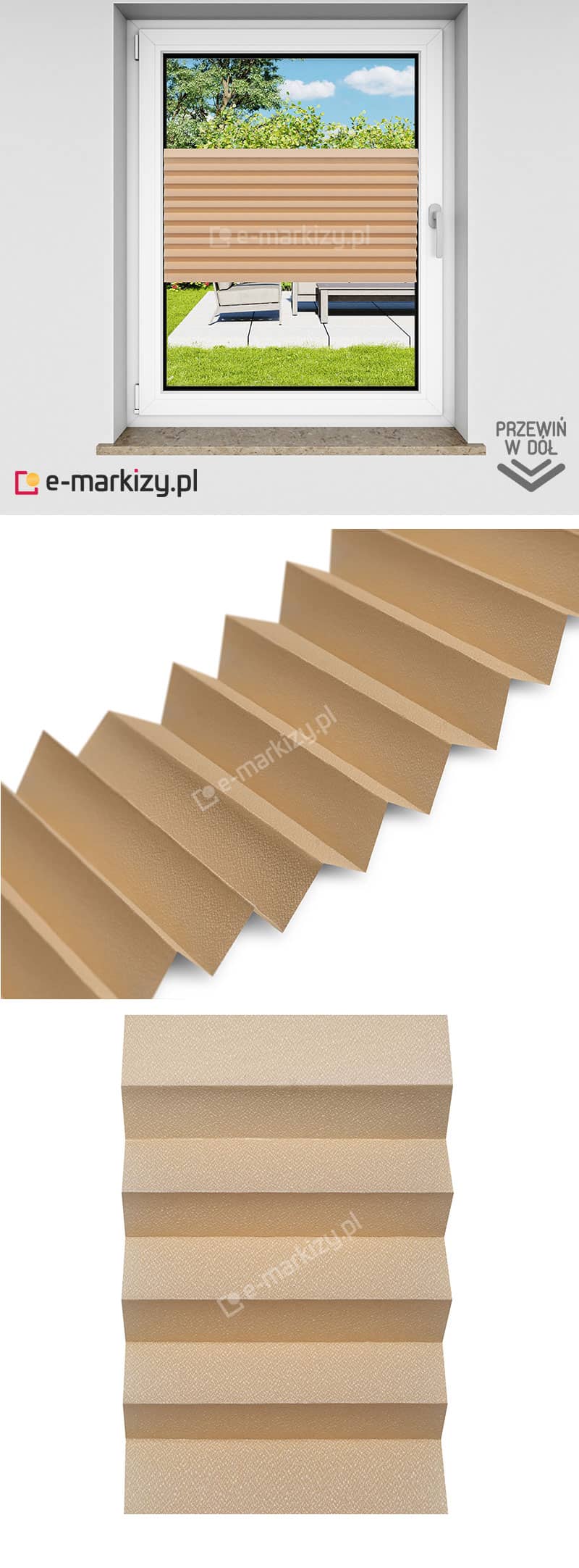 Ze względu na właściwości tkanin plisowanych, po zwinięciu mogą różnić się odcieniem od tkaniny rozwiniętej, nie stanowi to wady materiału.