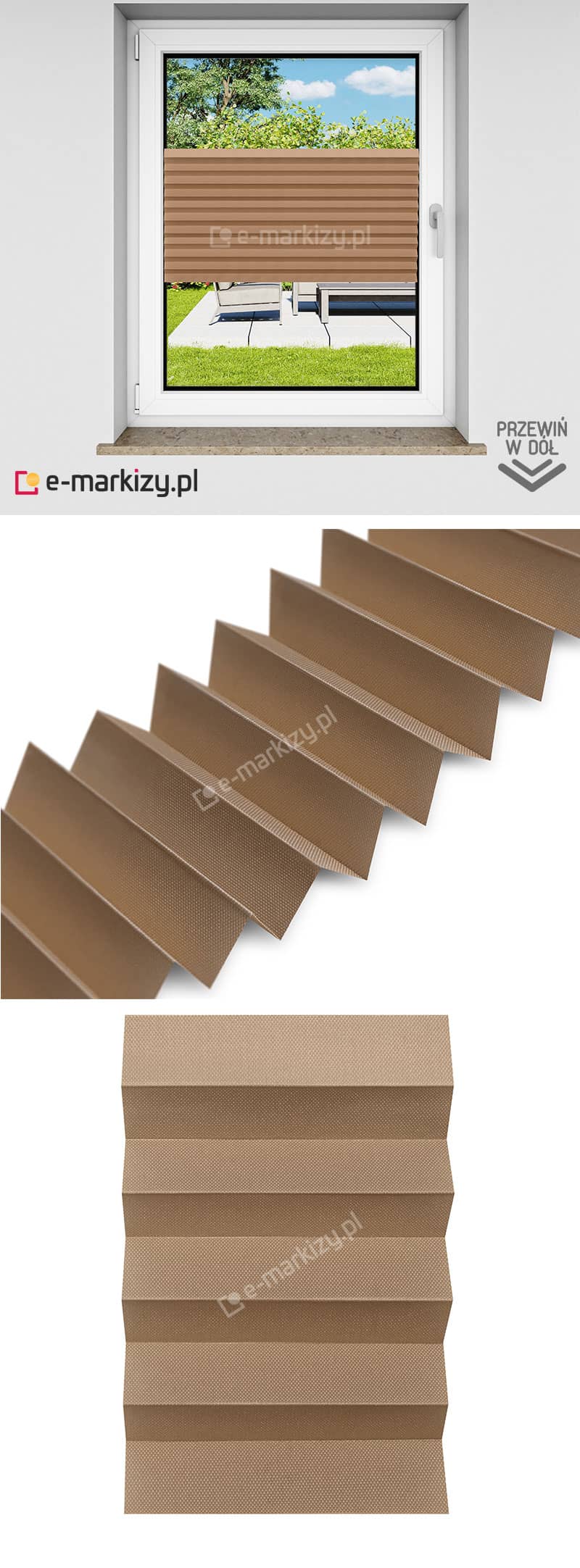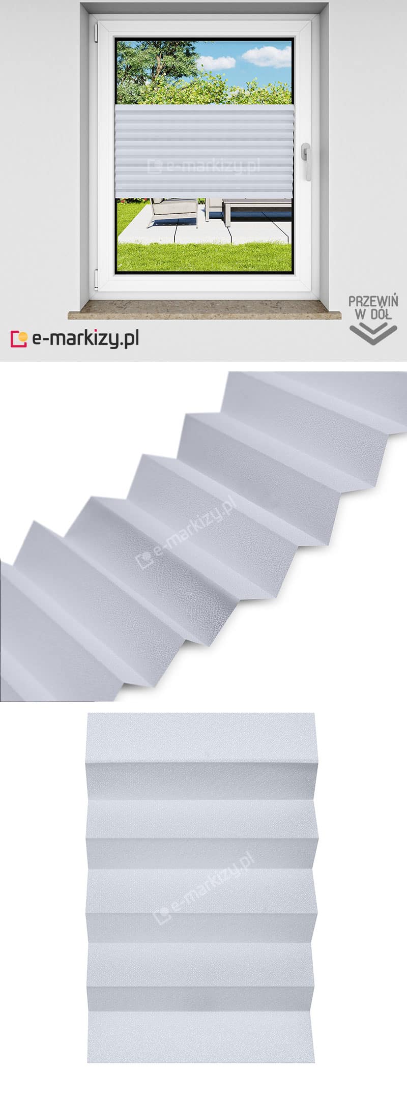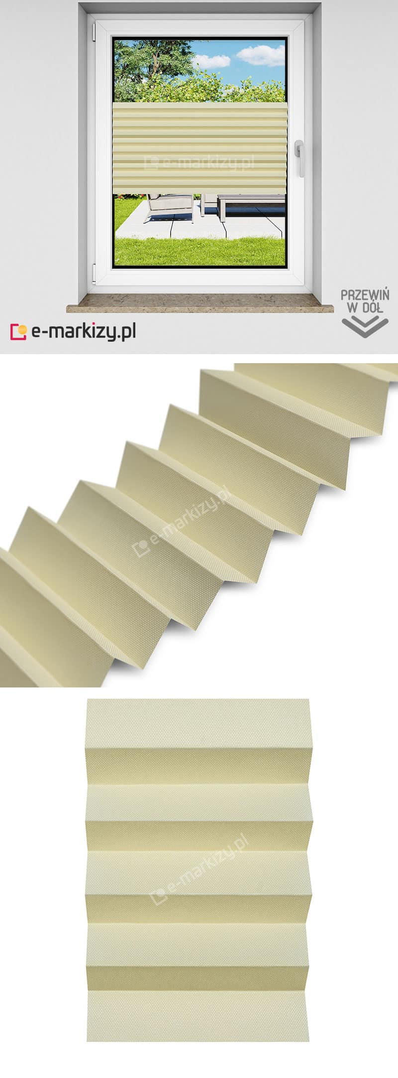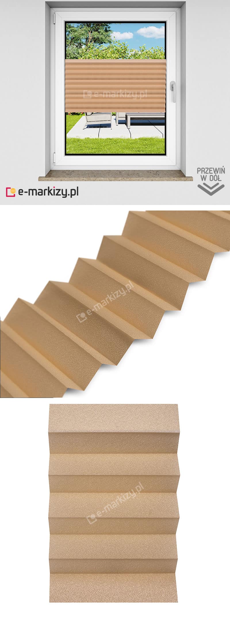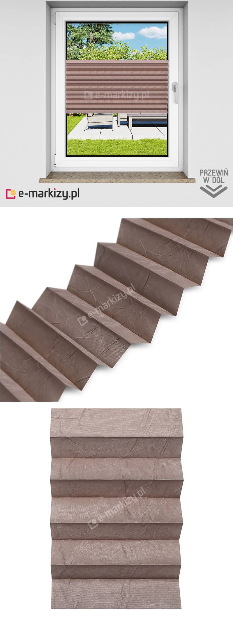 Ze względu na właściwości tkanin plisowanych, po zwinięciu mogą różnić się odcieniem od tkaniny rozwiniętej, nie stanowi to wady materiału.