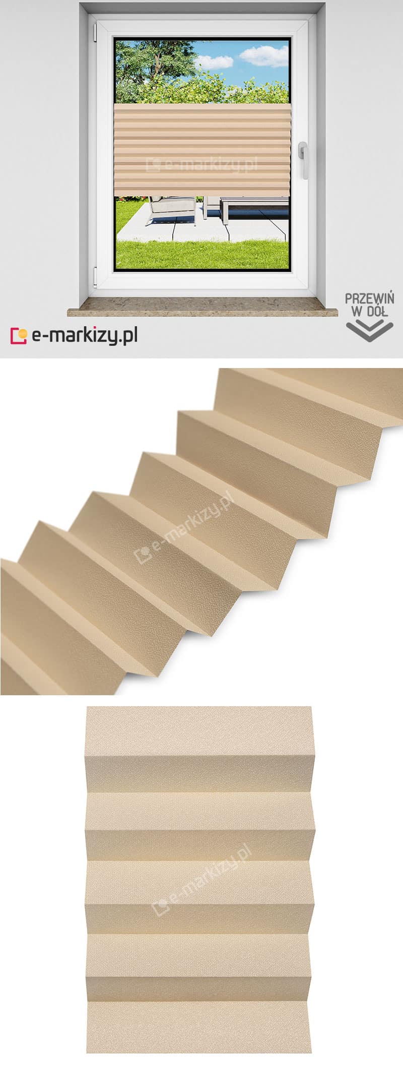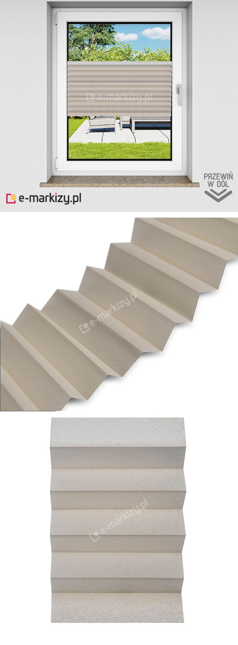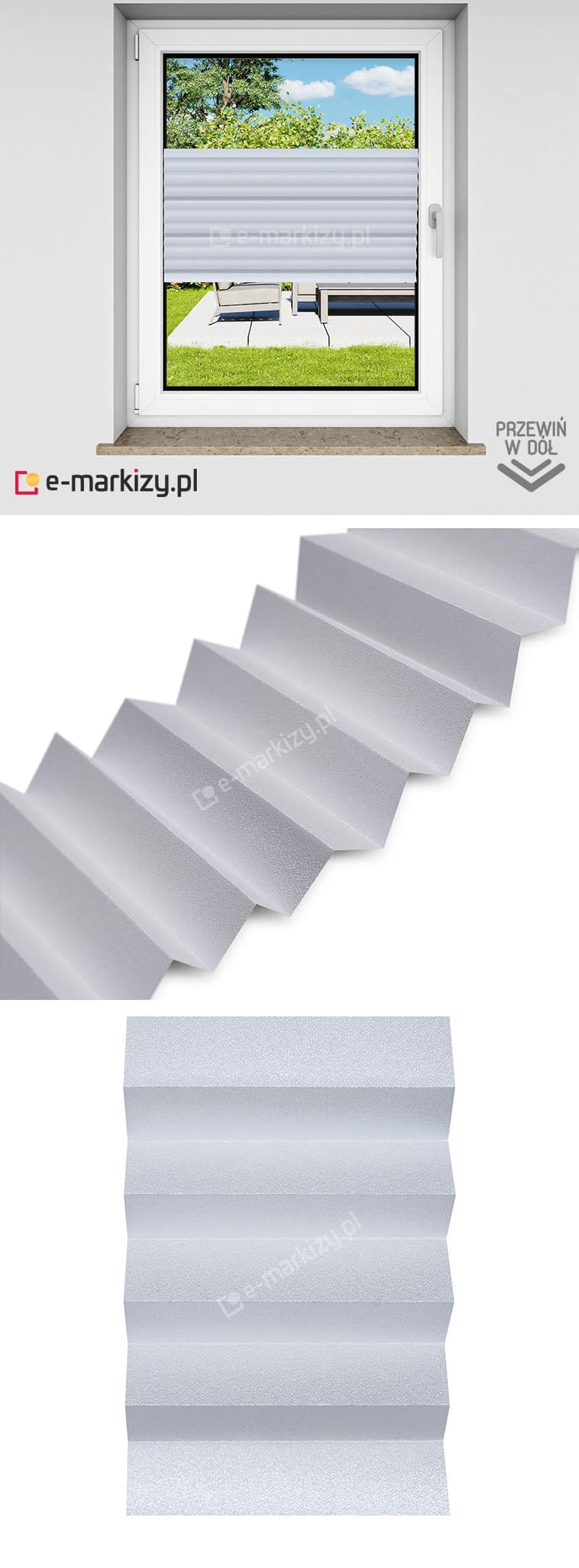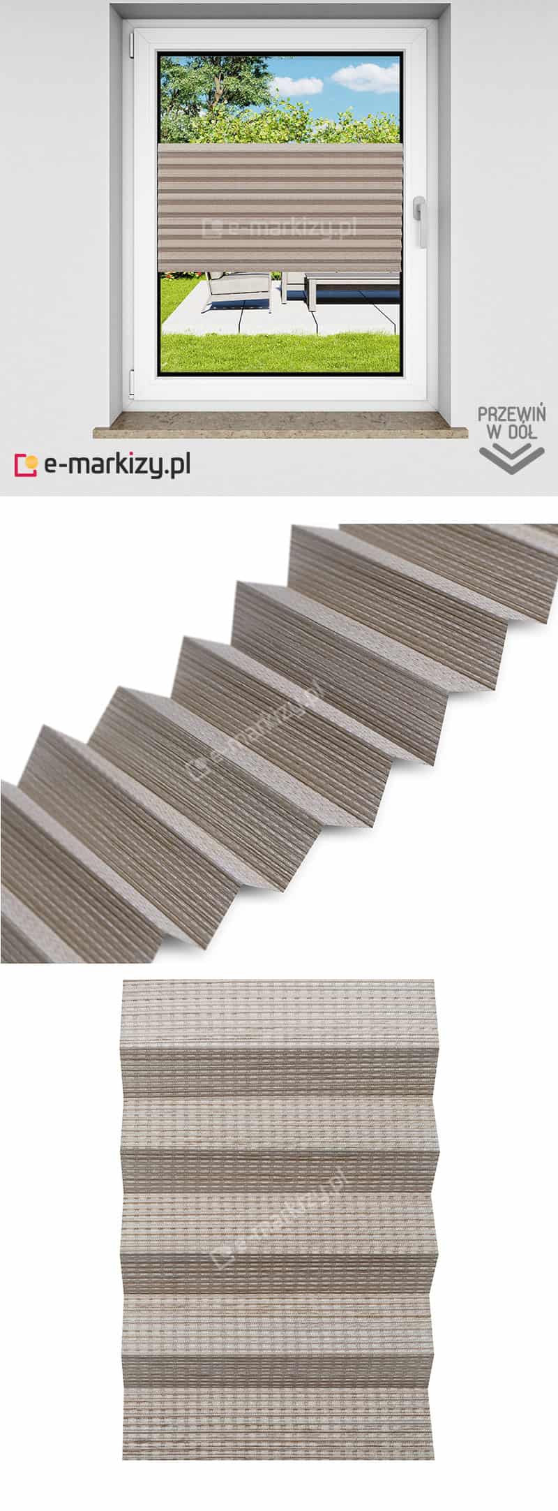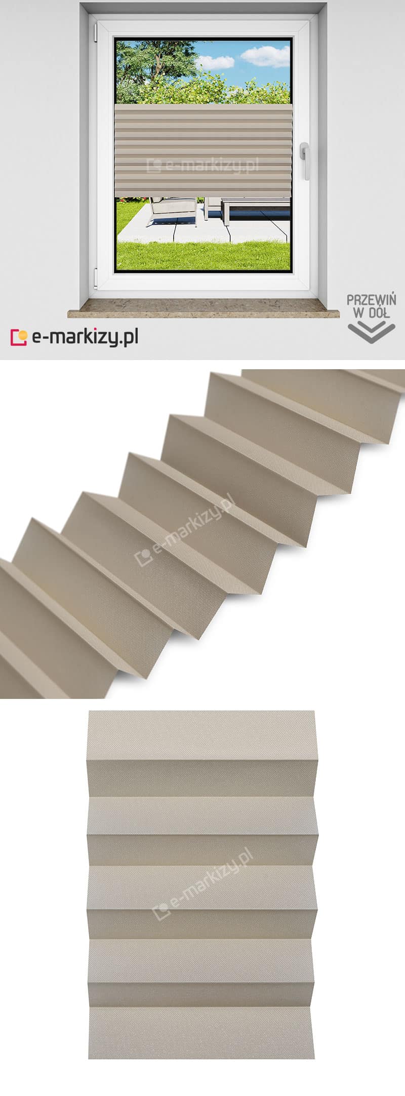 Ze względu na właściwości tkanin plisowanych, po zwinięciu mogą różnić się odcieniem od tkaniny rozwiniętej, nie stanowi to wady materiału.