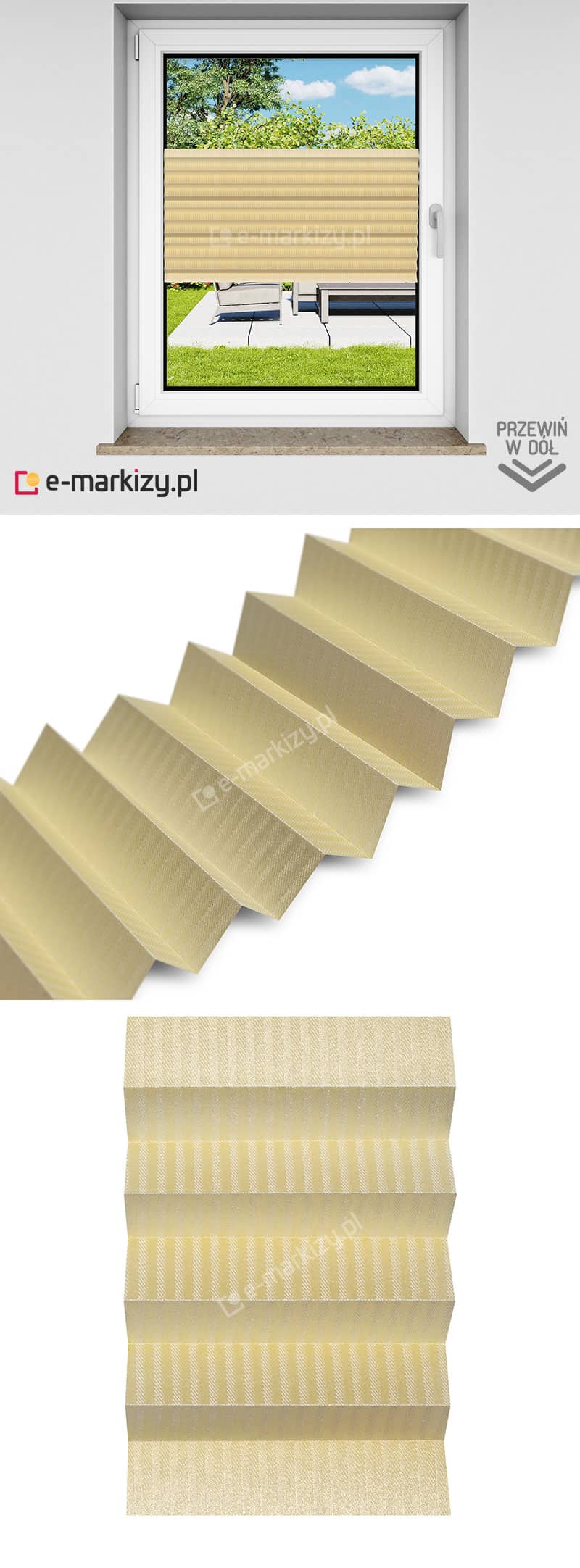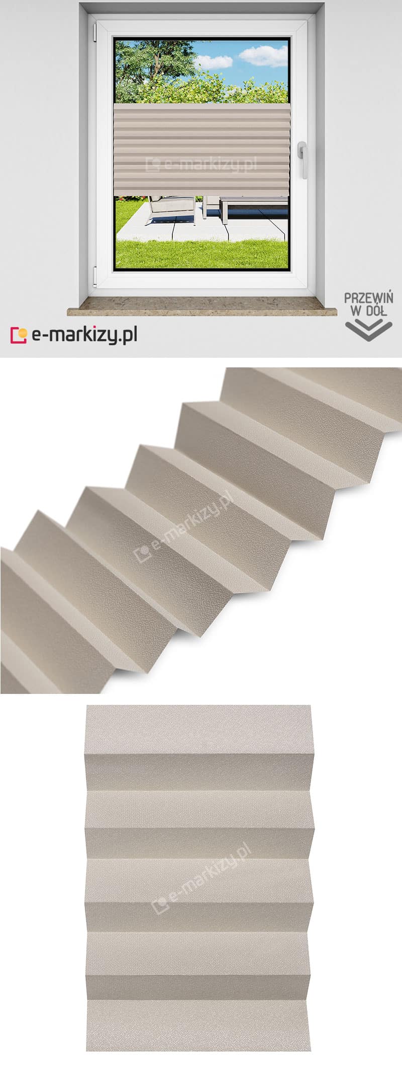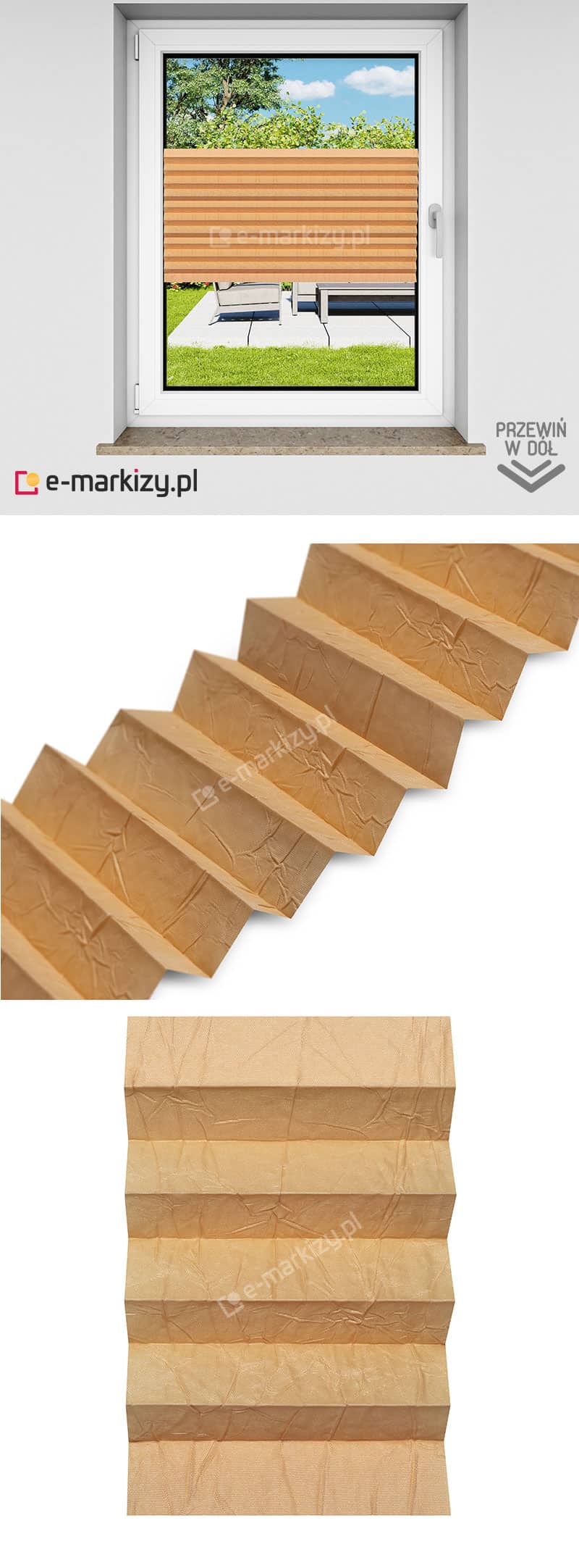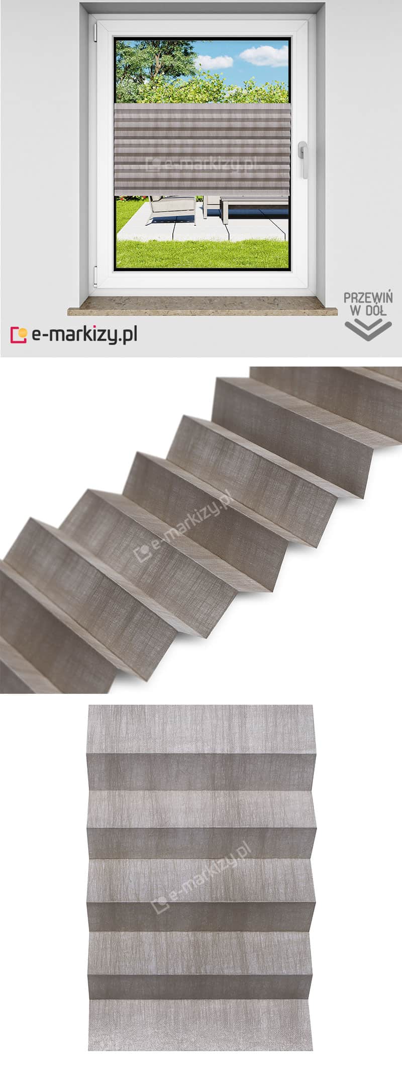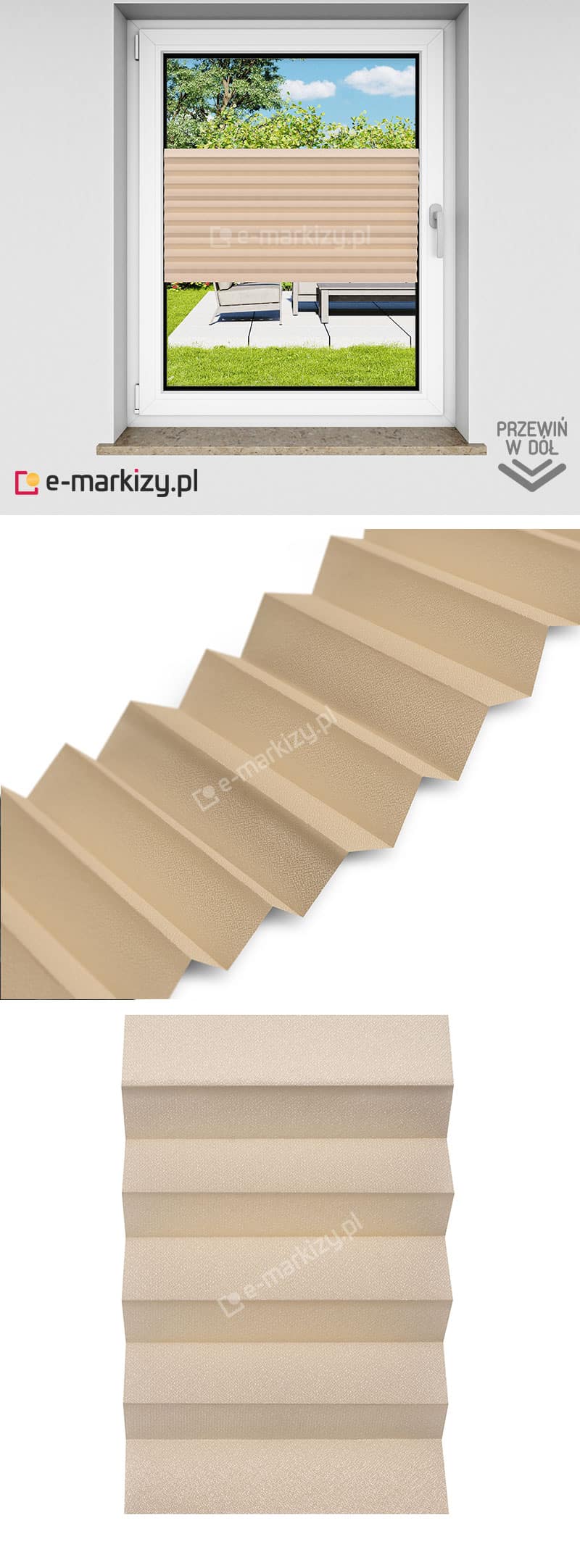 Ze względu na właściwości tkanin plisowanych, po zwinięciu mogą różnić się odcieniem od tkaniny rozwiniętej, nie stanowi to wady materiału.