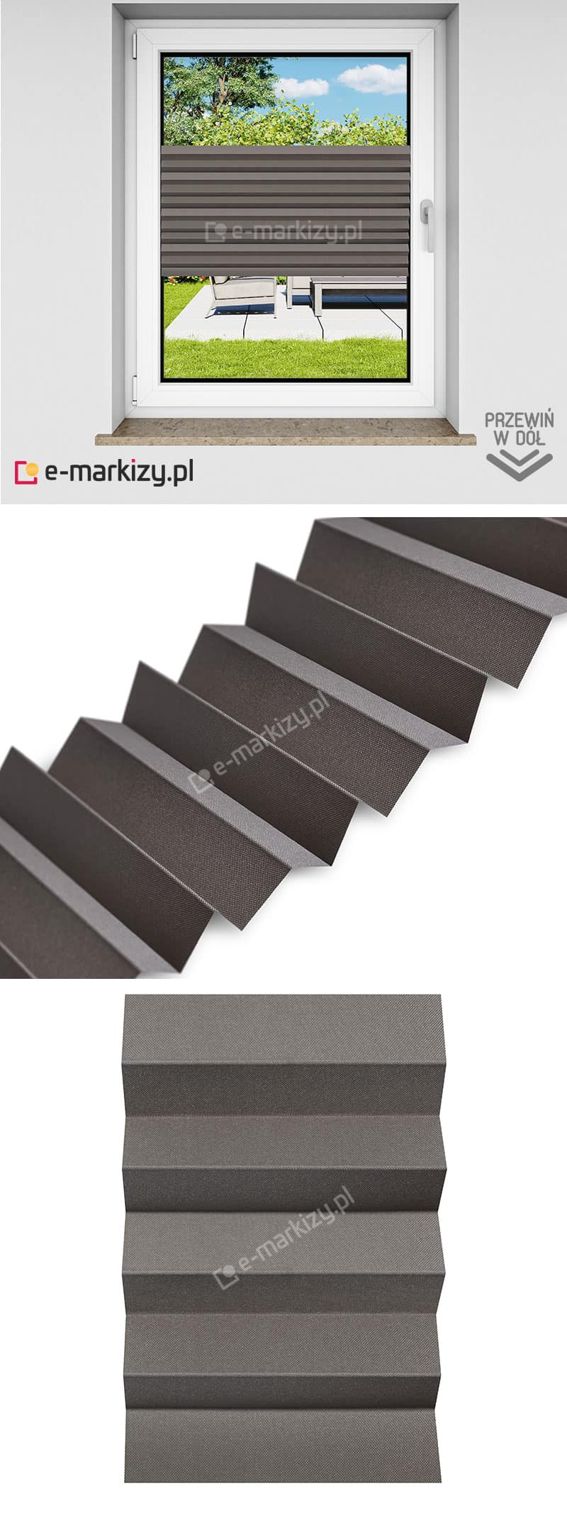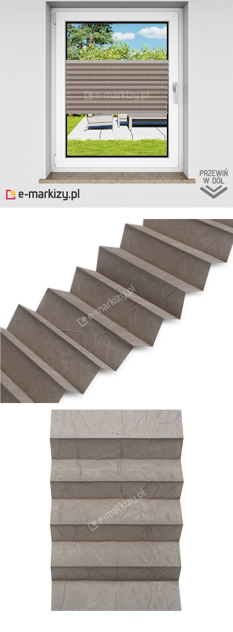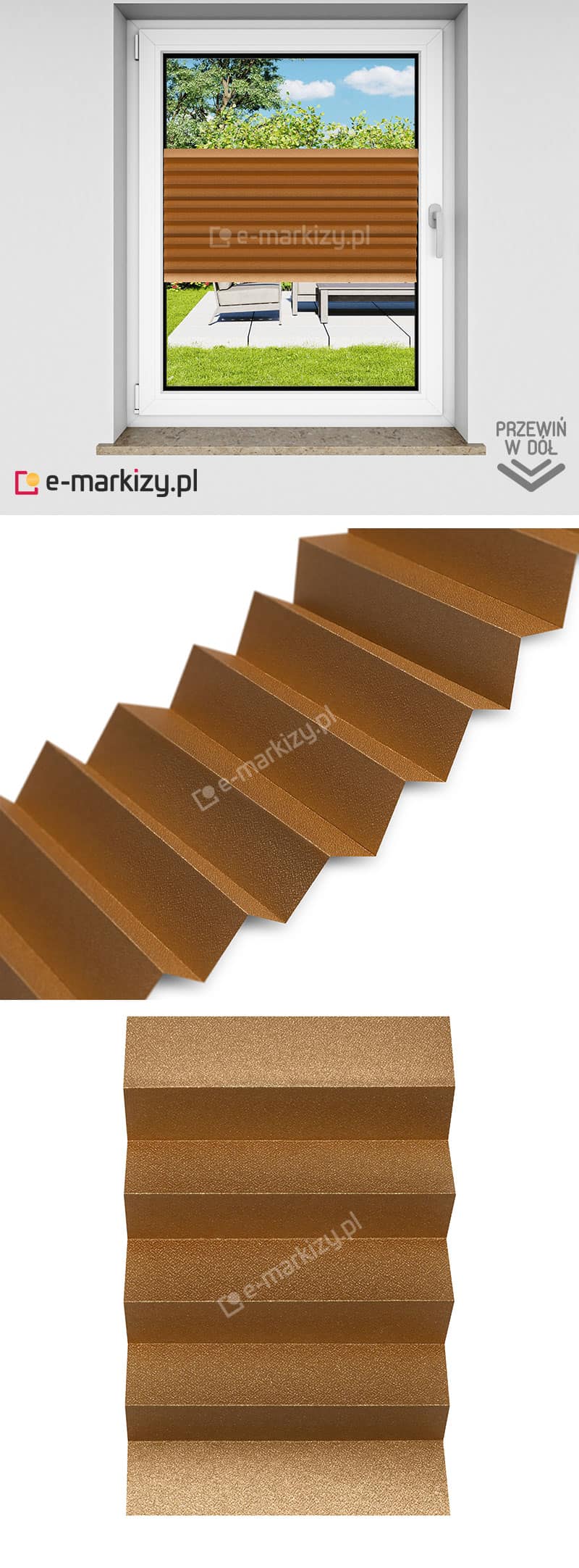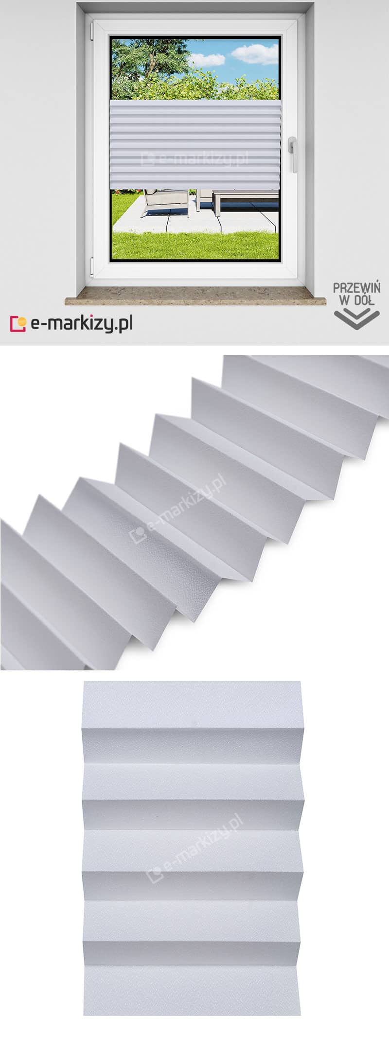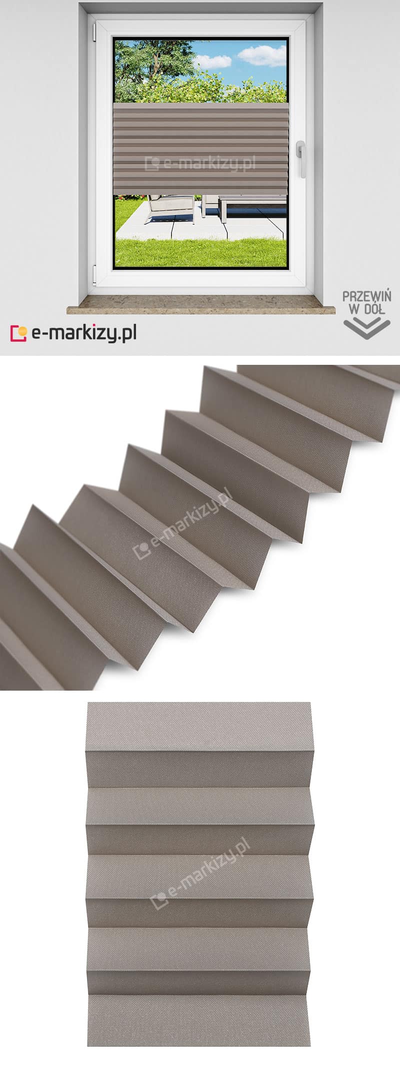 Ze względu na właściwości tkanin plisowanych, po zwinięciu mogą różnić się odcieniem od tkaniny rozwiniętej, nie stanowi to wady materiału.