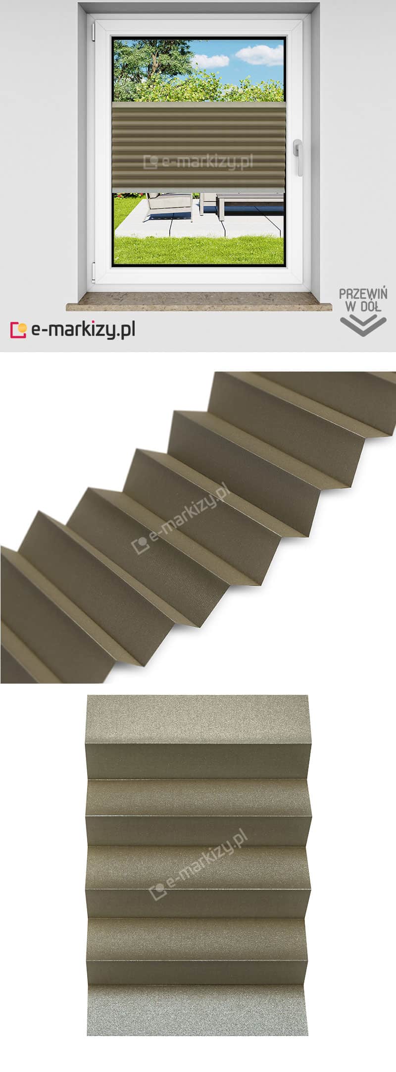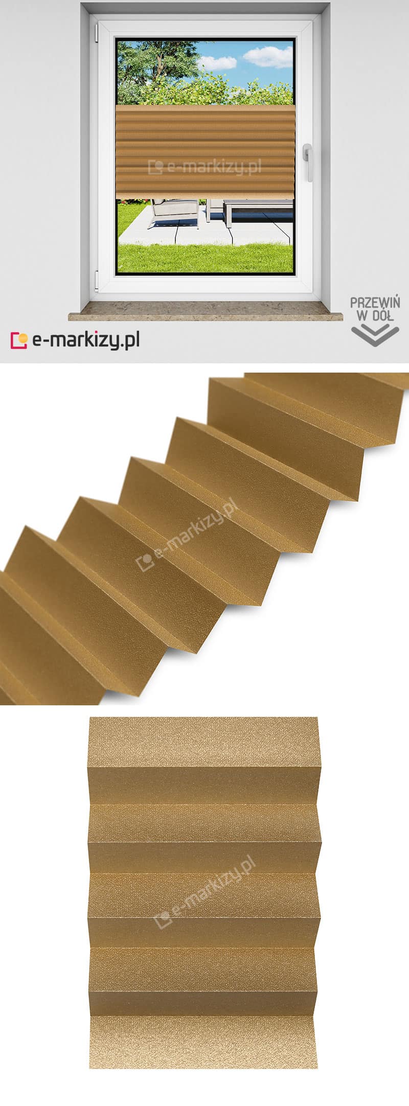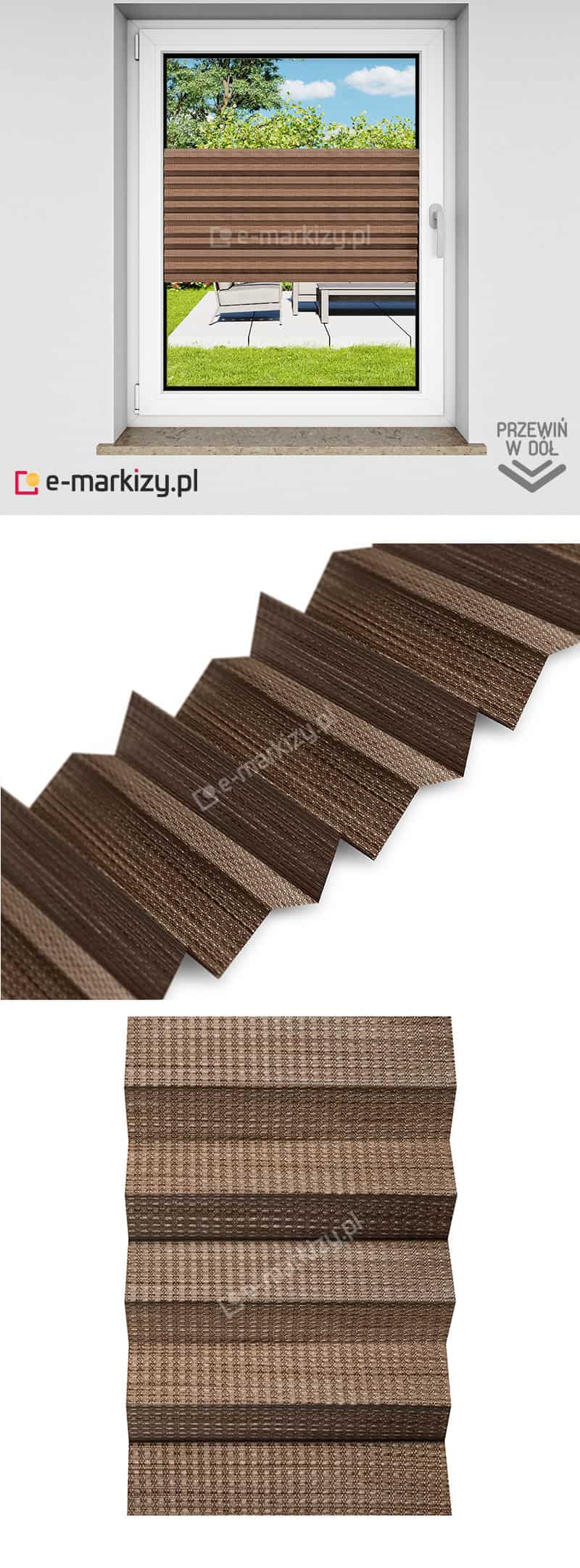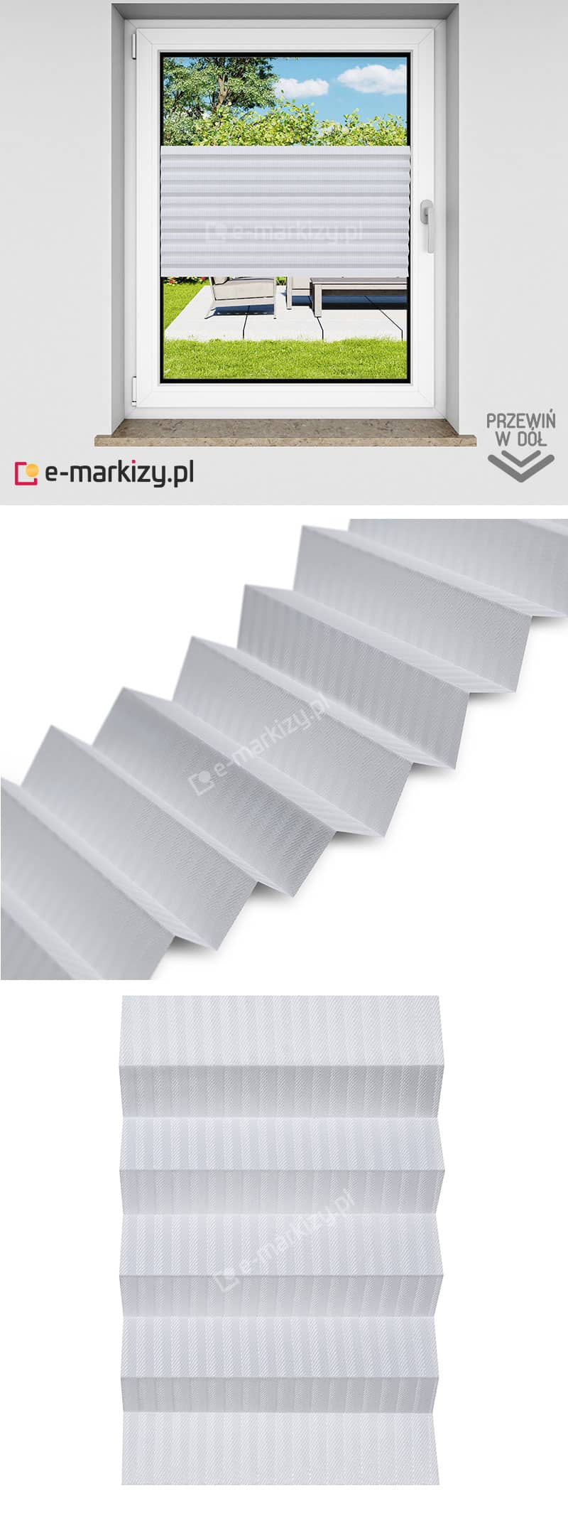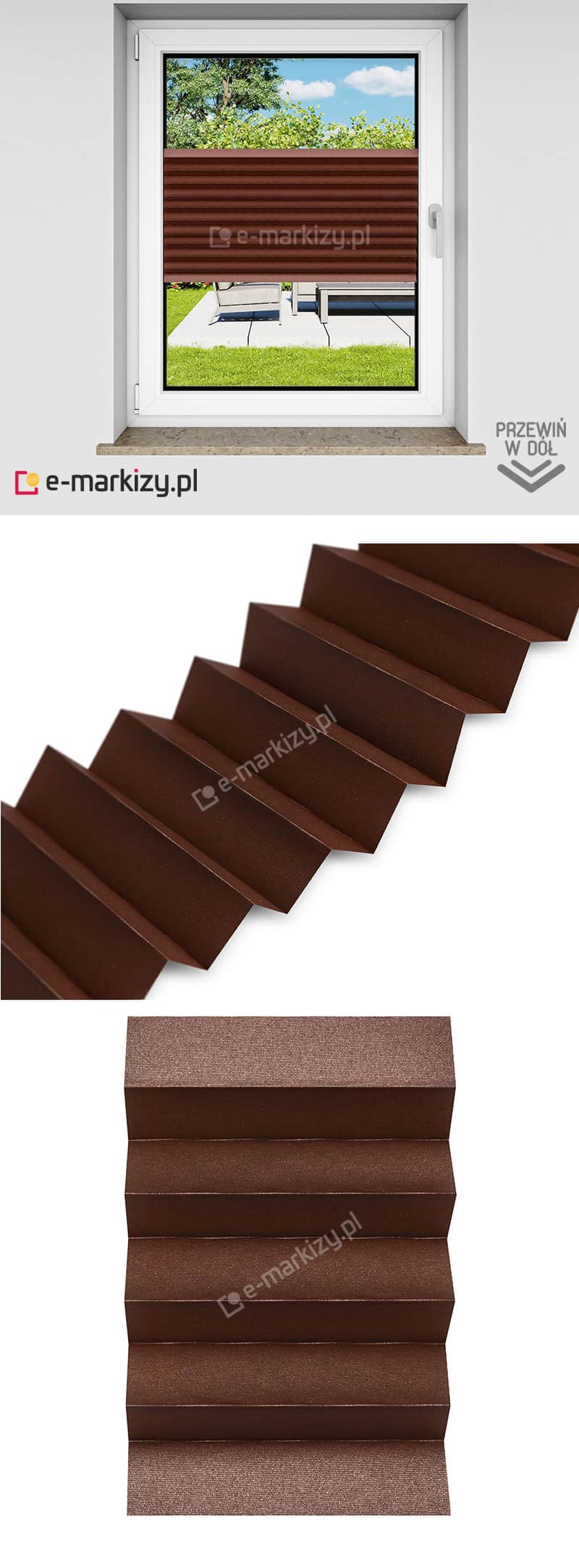 Ze względu na właściwości tkanin plisowanych, po zwinięciu mogą różnić się odcieniem od tkaniny rozwiniętej, nie stanowi to wady materiału.